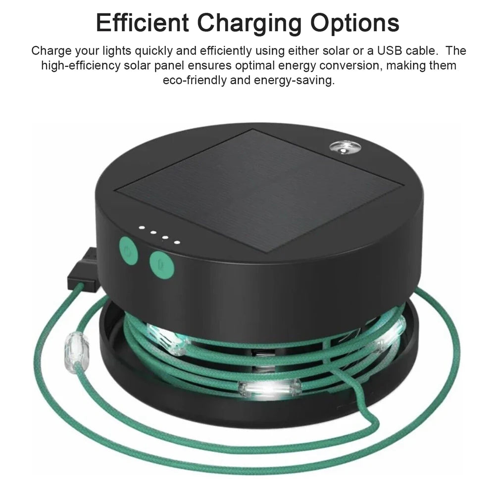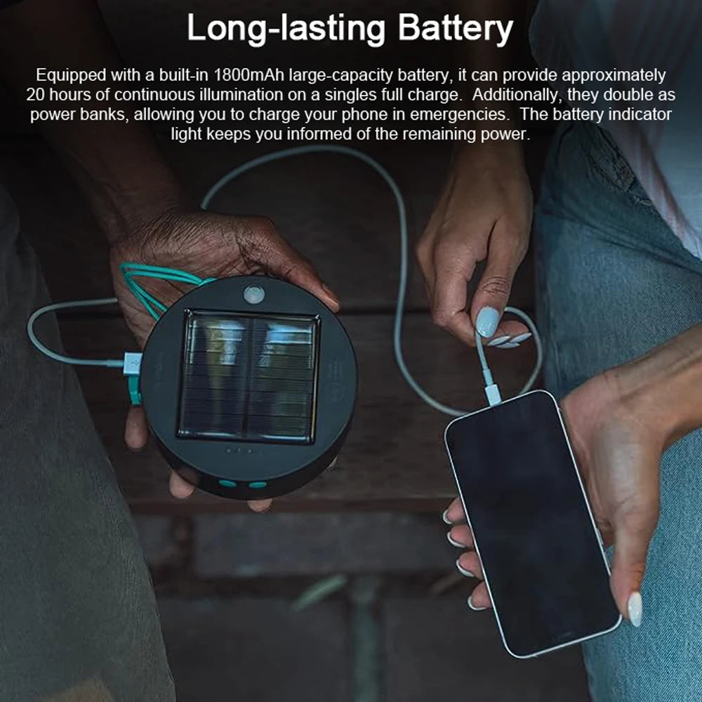 18ft Solar Camping String Lights 20LEDs Rechargeable Light Waterproof with Multiple Light Modes Power Bank Function for Decor