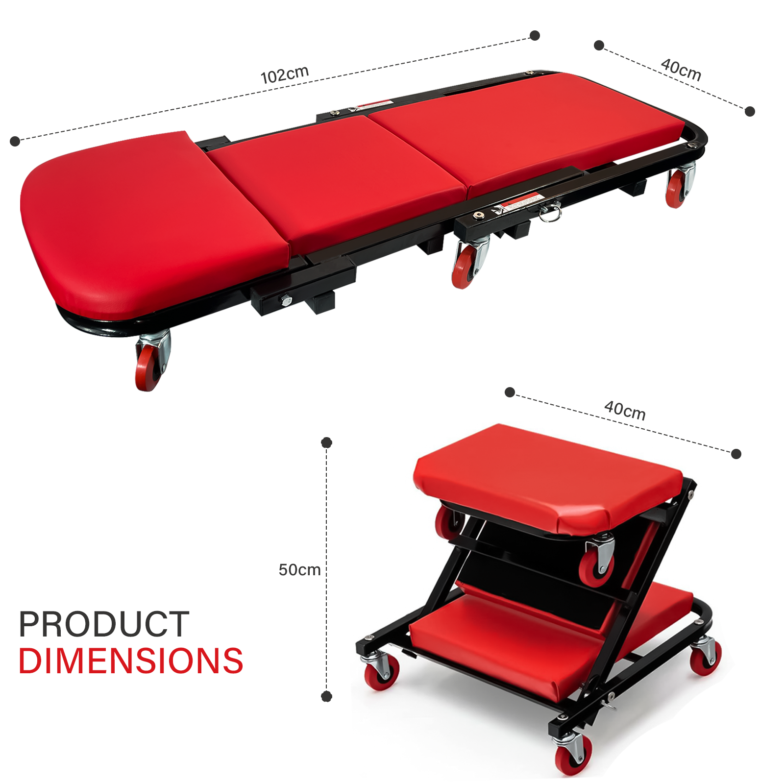 The main frame of the car creeper is constructed of heavy-duty metal, which is not only anti-deformation and sturdy, but also rustproof. Furthermore, the solid screw connection highly strengthens the overall structure. The weight capacity is up to 150 kg. Designed with a padded seat, the rolling creeper offers you optimal comfort to sitting or lie down. And the surface is made of PVC leather, which is tear-resistant and wearable ensuring long-lasting service life.