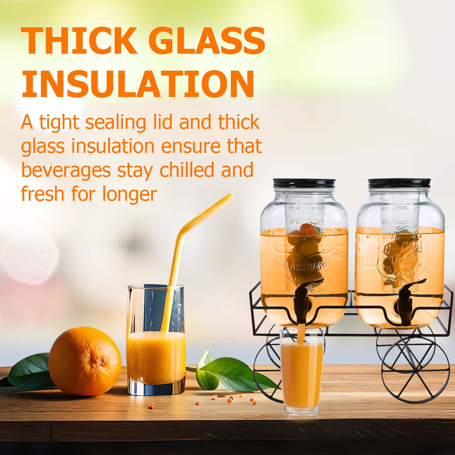 This double-glass drink dispenser will definitely make a great centerpiece and enhance your next party or event. Perfect for outdoor or rustic parties. The clear glass design beautifully showcases cocktails, infused waters, juices, and more, creating an enticing visual display that appeals to both guests and family members.