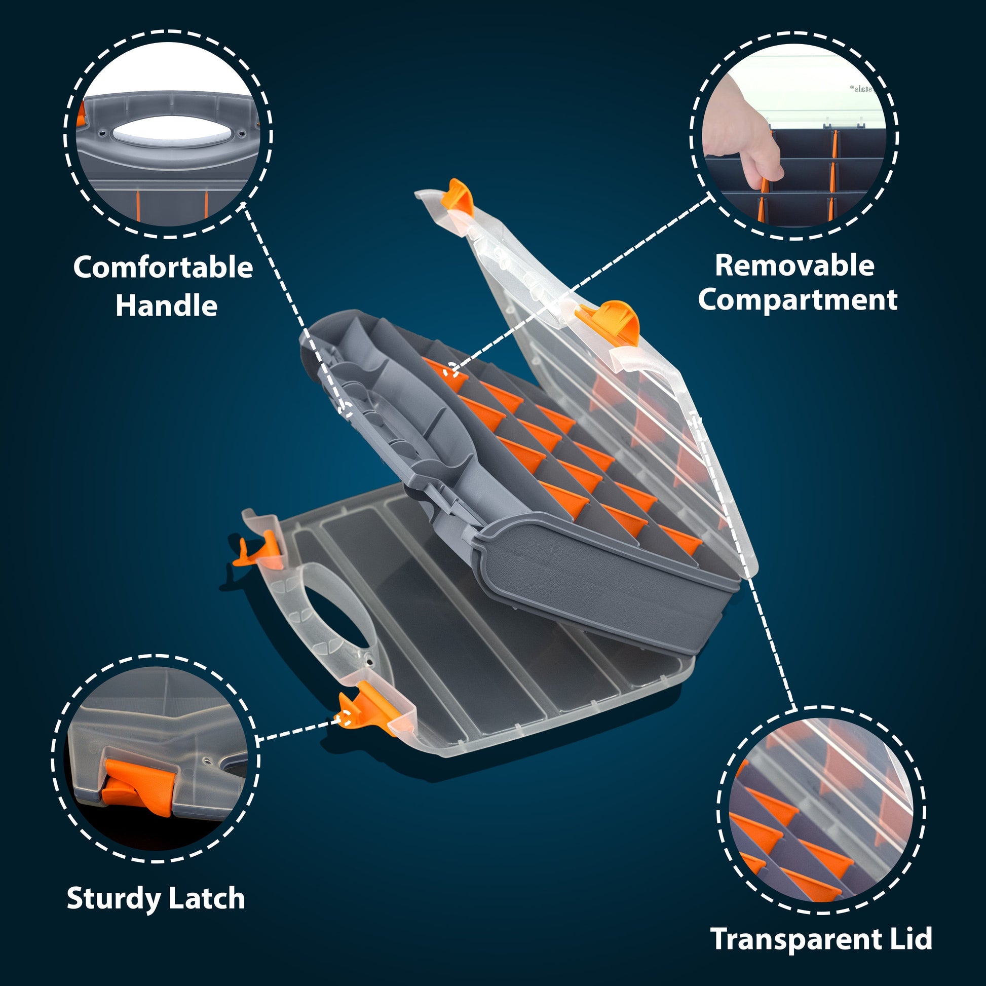 This 32 drawers multi-unit storage box allows you to keep small lose able items such as nuts, bolt screws, sewing utensils etc in one simple place. The box also features an easy-to-hold carry handle so that you can transport your items without having to empty the box.