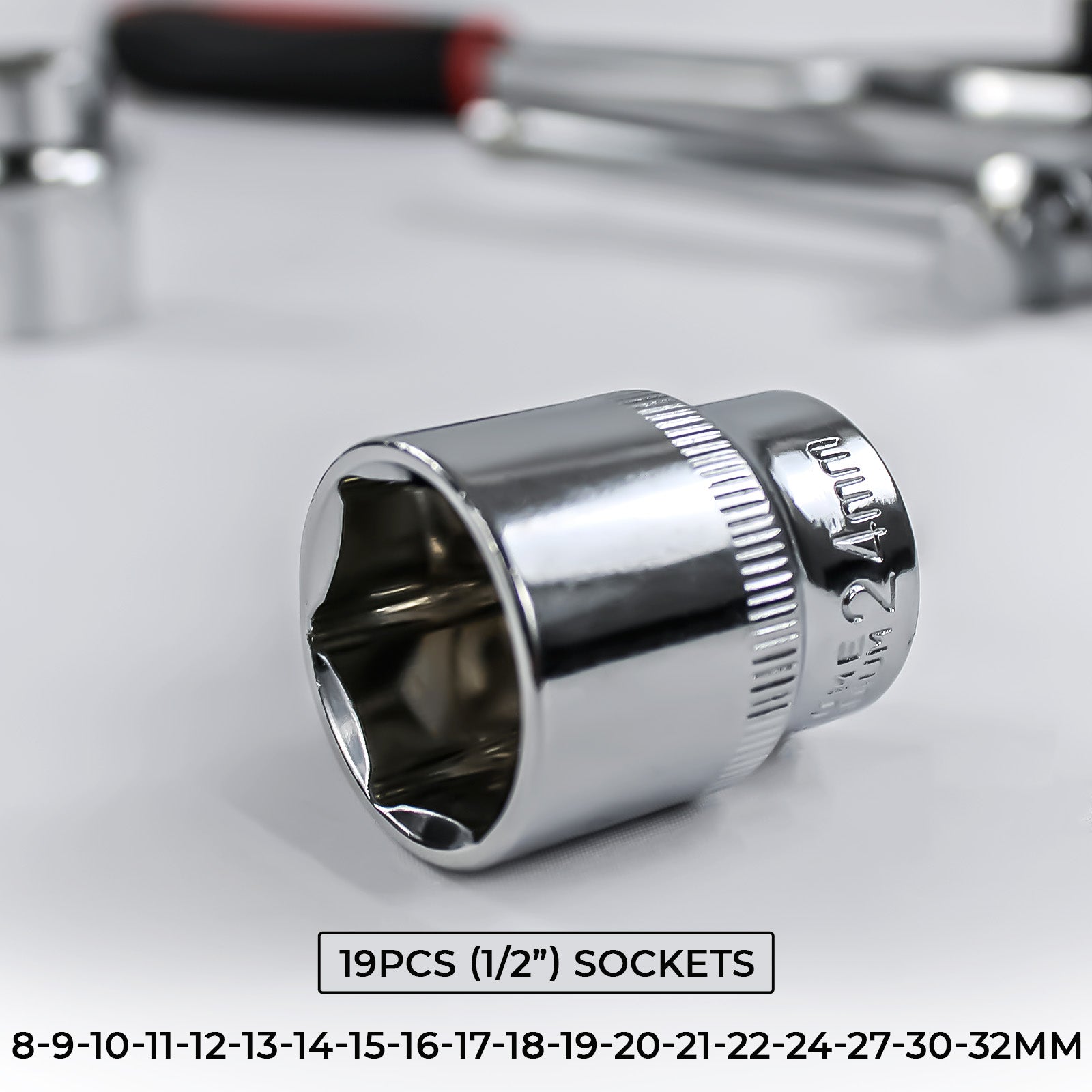 - 1/2" Sockets - 8,9,10,11,12,13,14,15,16,17,18,19,20,21,22,24,27,30,32MM - 19Pcs