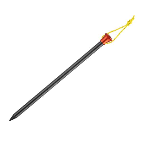 The rugged and simple Hollow Stake was engineered as a lightweight anchor for use in hard ground. Constructed of ultralight 7075 aluminium, it offers high strength and holding power, with the added durability of a solid aluminium head. A reflective pull loop allows for easy observation and removal.