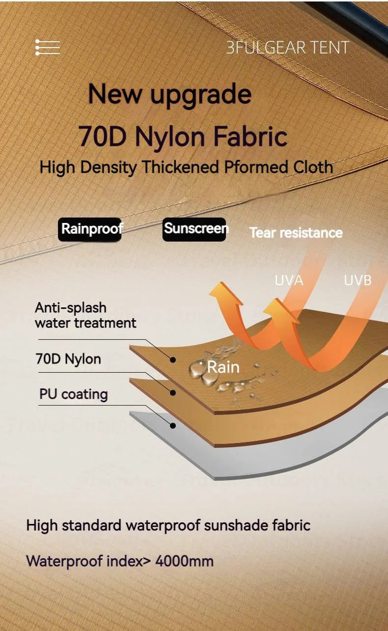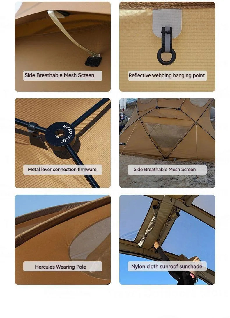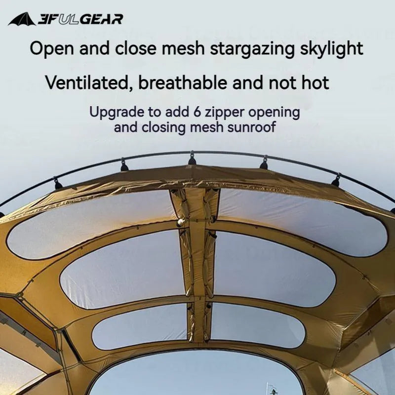 3FUL GEAR 2.0 Beetle 16 Dome Tent 70D Nylon Spherical Tent Breathable Large Space Tunnel Tent With Chimney Mouth Camping Hiking