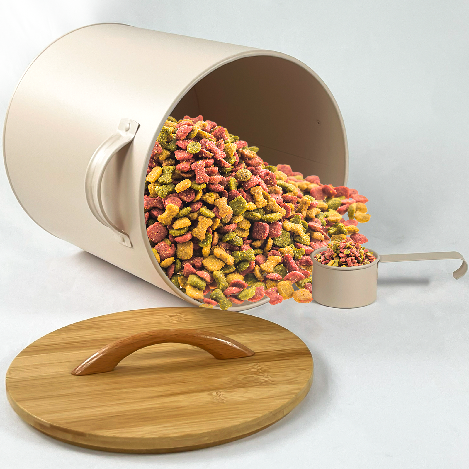Do you love your pets - but hate those bulky, unsightly see-through plastic pet food bins lying in the corner? Or worse: Do you always have to hide them in the closet? No more: This dog food container combo will look awesome in any decor or environment! Any guests, friends, or family will be sure to compliment you on this luxurious-looking food and treat storage set. And your Dog will love them too!