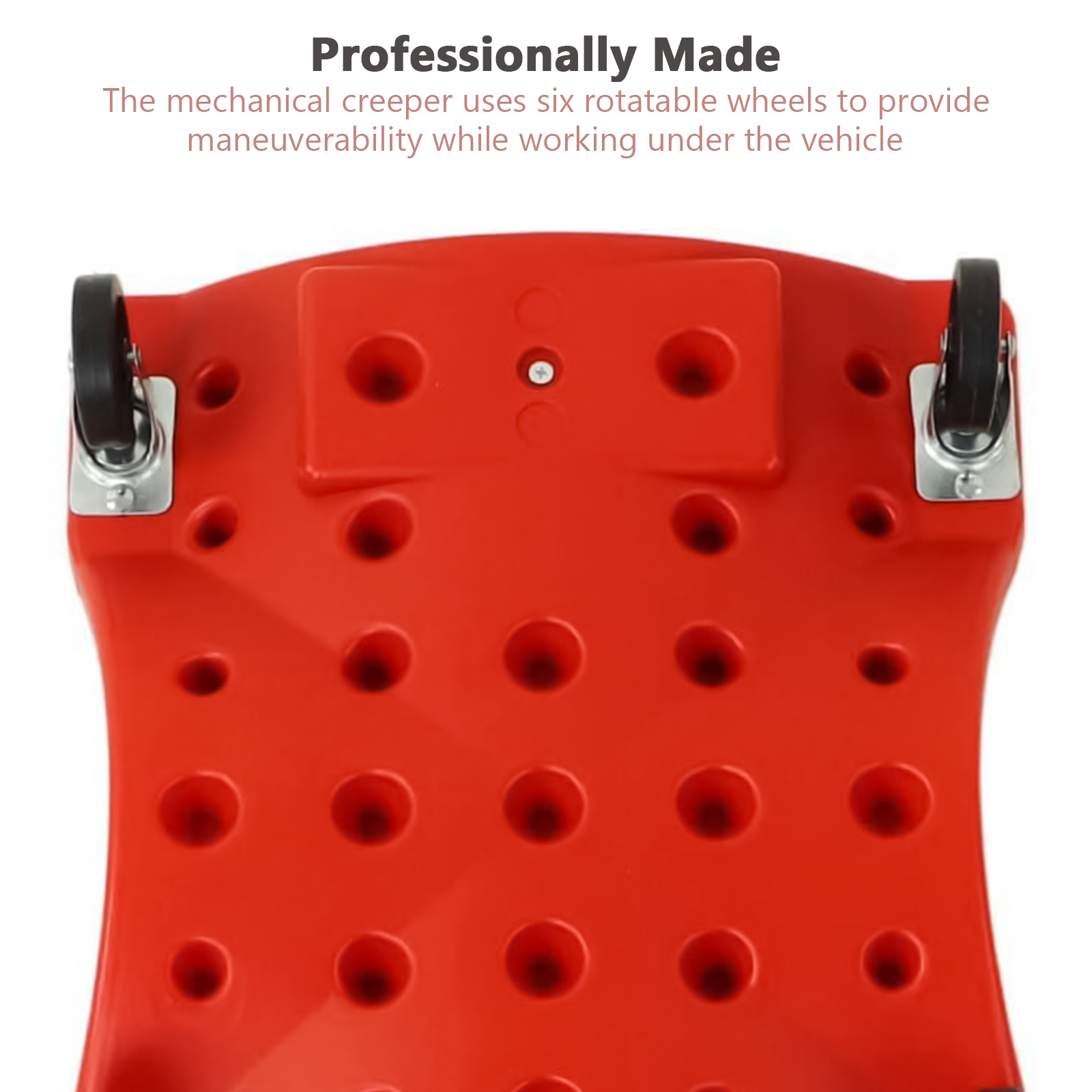 - The Creeper Board is equipped with 6 wheels, which are able to swivel 360 degrees to make you move smoothly even in tight under-car space.