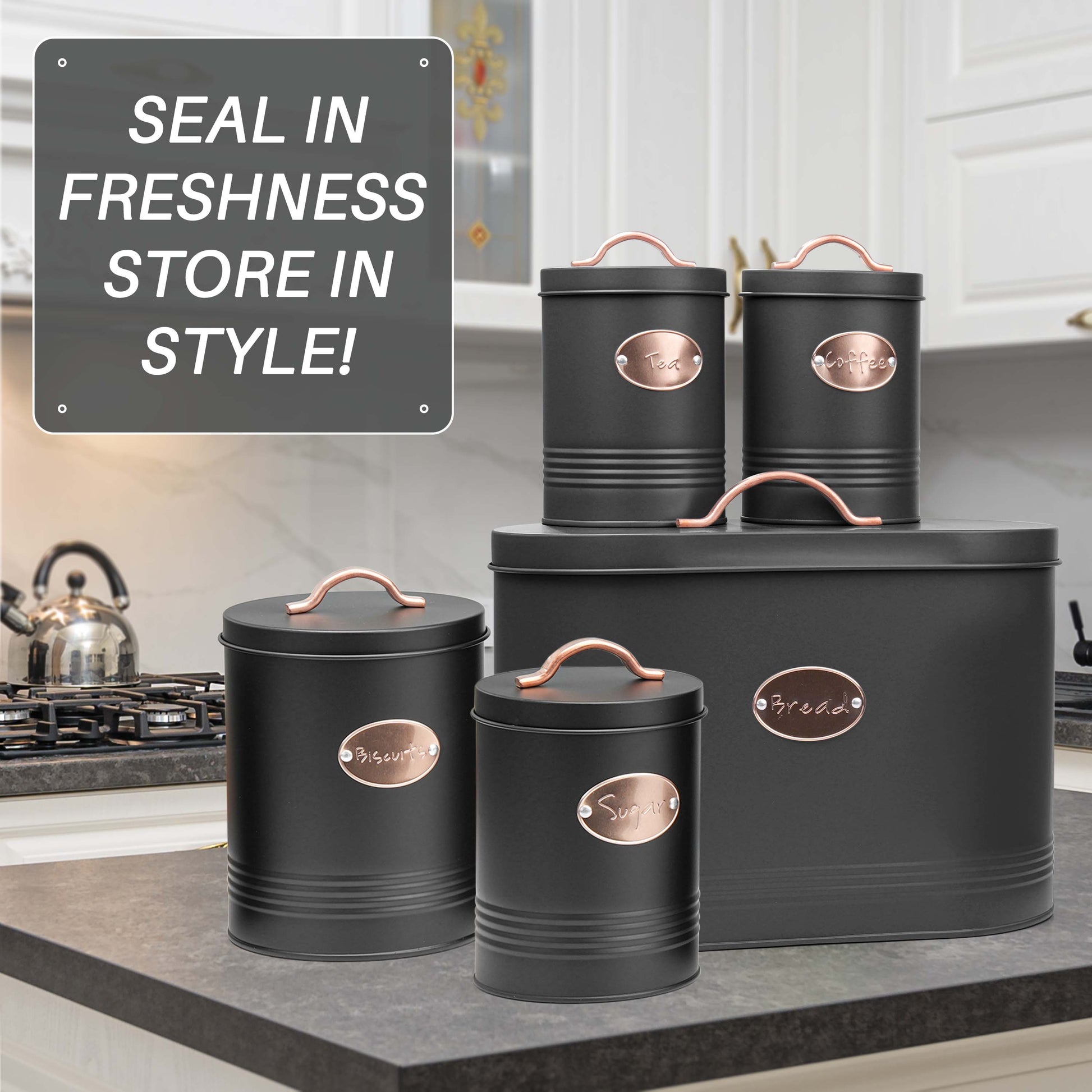 - 5pc Bread Bin set with copper features, Perfect for all kitchen decors