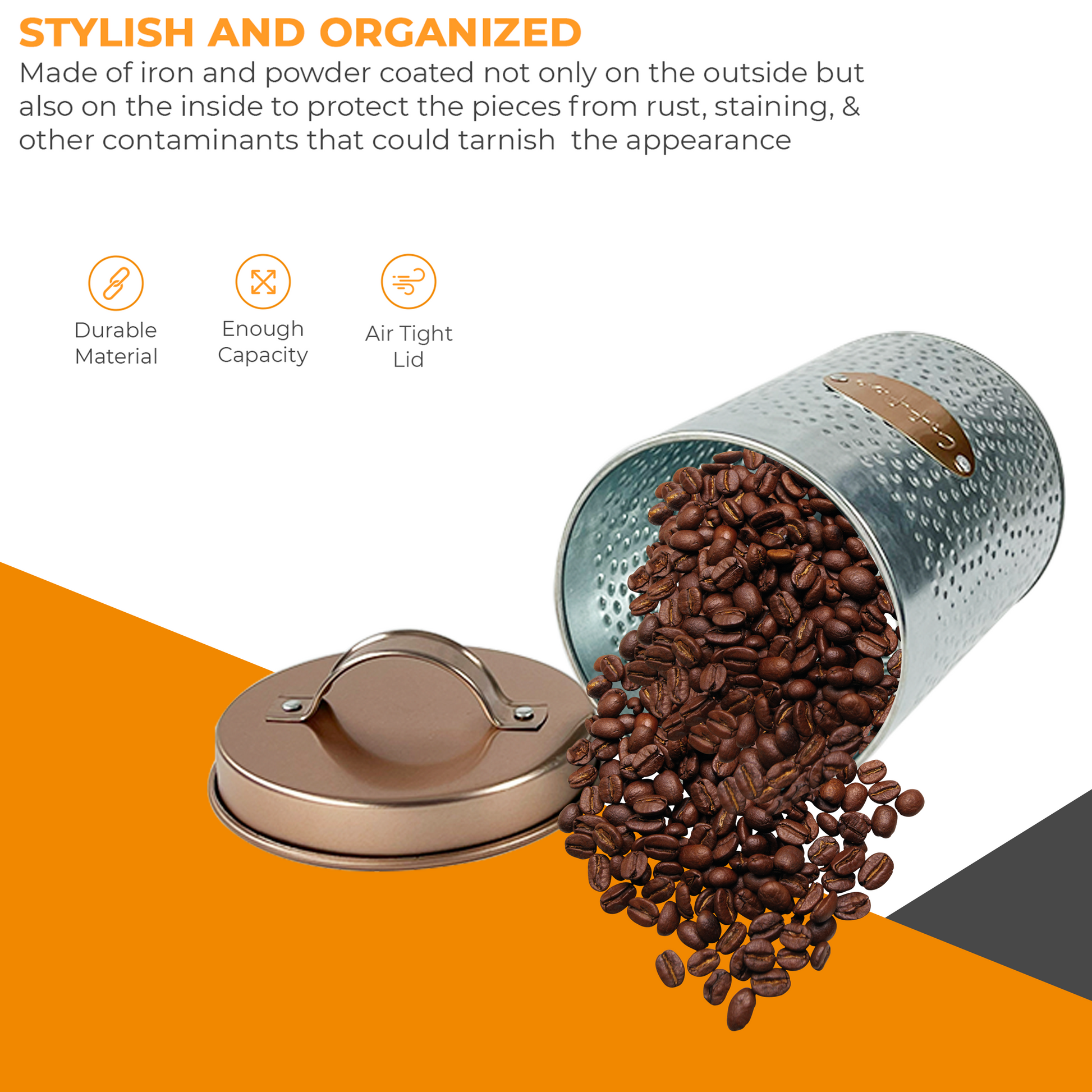 This highly stylish powder-coated stainless steel bread bin has a beautiful copper lid and is the perfect loaf storage box to keep your bread fresh. Its matching sugar tea coffee biscuits set completes the effect. Together the set looks good in any kitchen. It's compact size bread and rolls can be stored in the kitchen to save space.