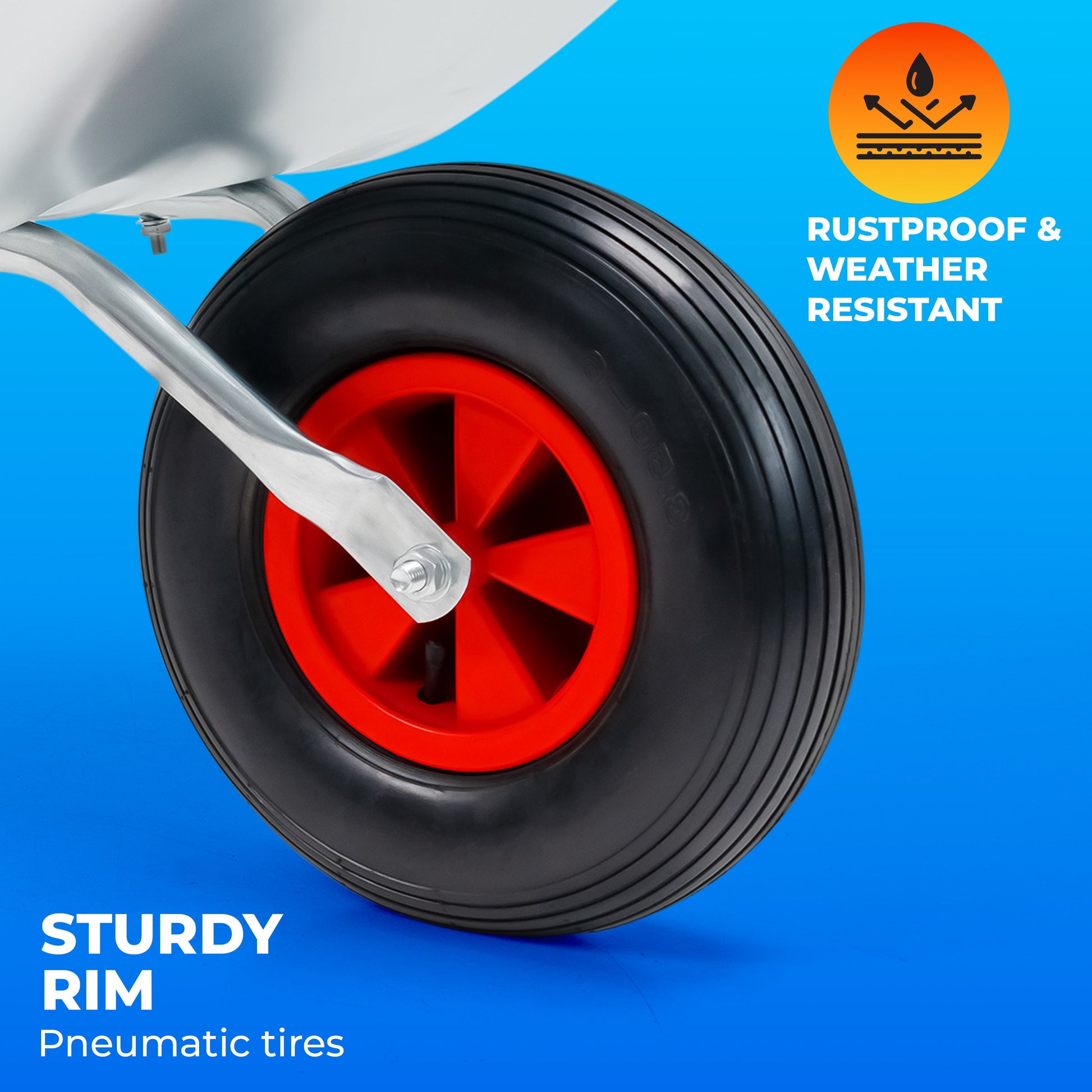 - LARGE 65 LTR CAPACITY: 65 Litre Capacity Wheelbarrow with Galvanised Steel Tubular Frame