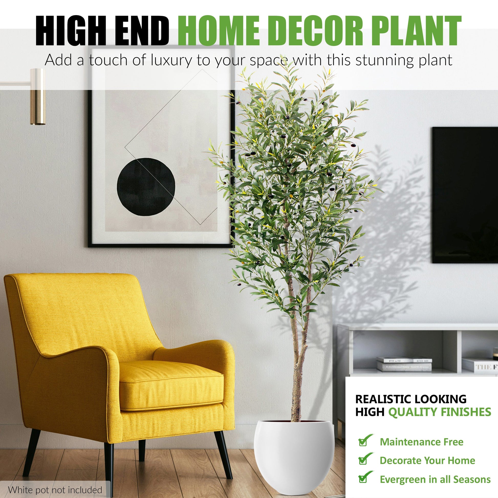 Year-Round Beauty: Embrace the allure of olive trees all year long. This artificial tree doesn't shed its leaves and remains vibrant in all seasons, allowing you to enjoy its beauty during spring, summer, fall, and winter.