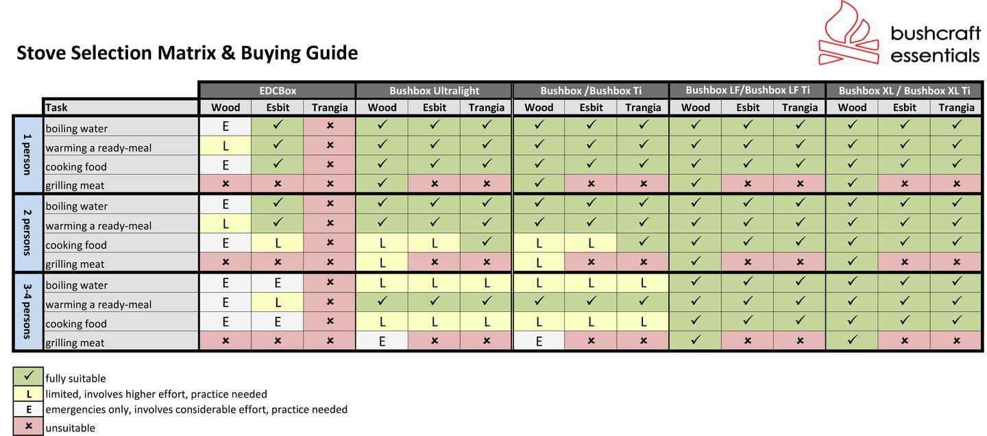 - multi-fuel, can be used with wood, organic matter, Trangia & Esbit