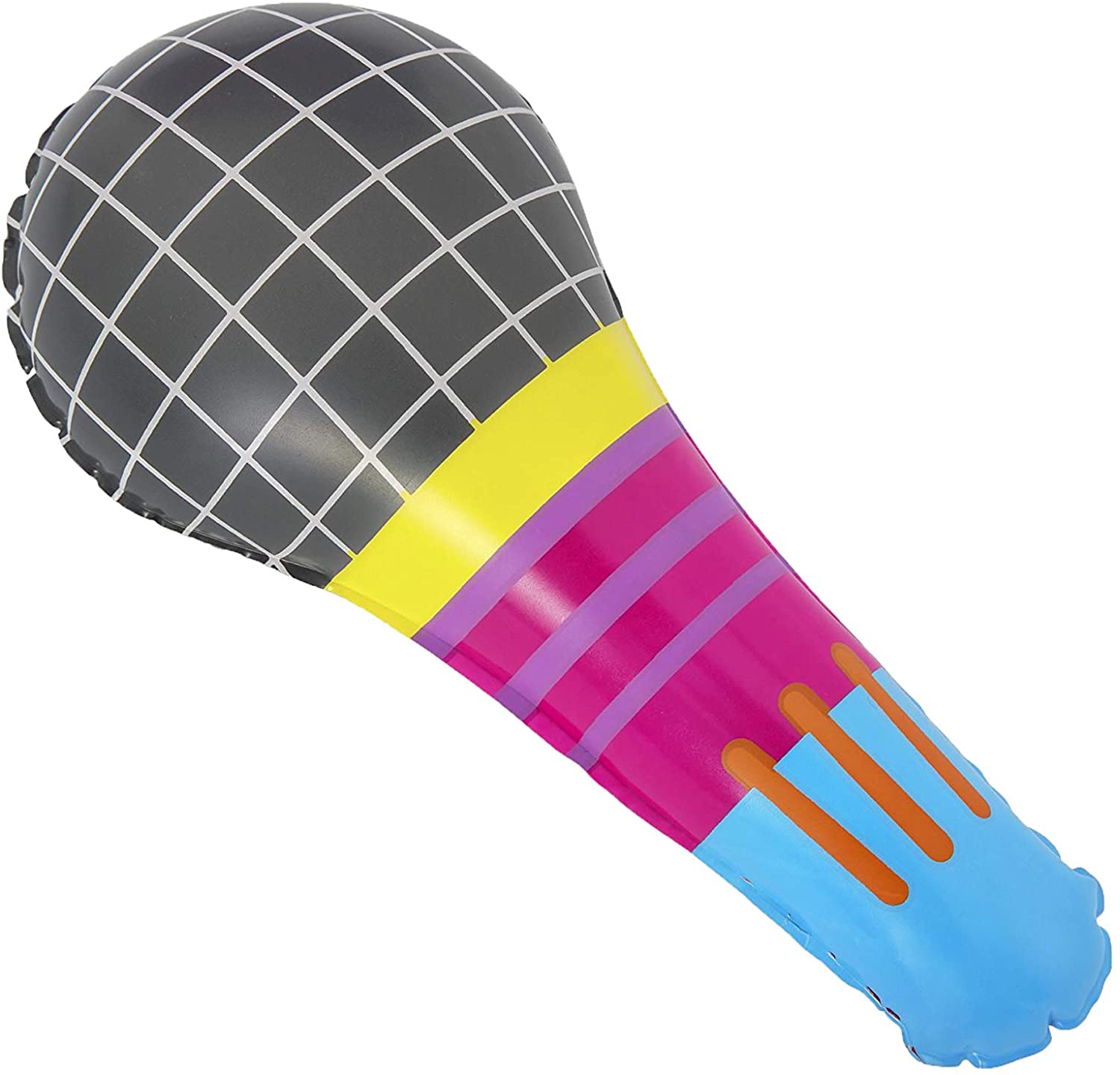 - COMPLETE SET: includes paddling pool, removable slide, built in arch sprinkler, fun ring toss game, two play ball tracks with 6 included play balls, inflatable microphone and drum