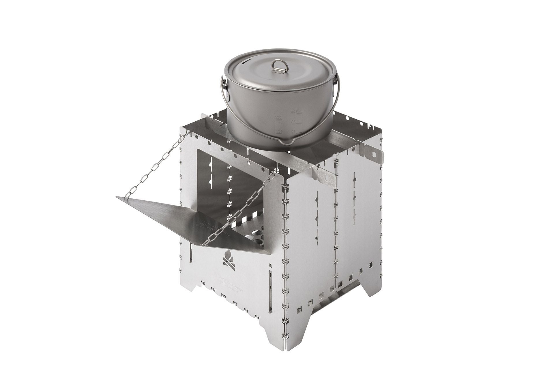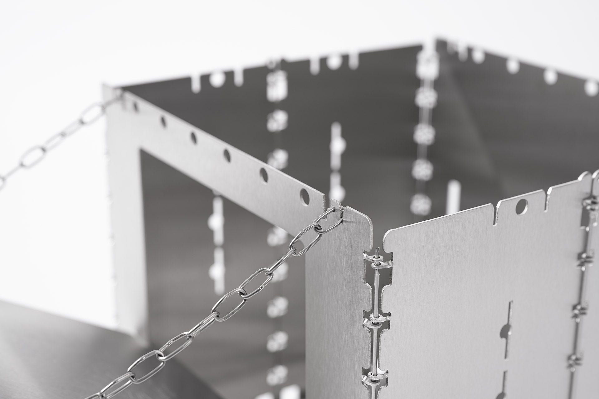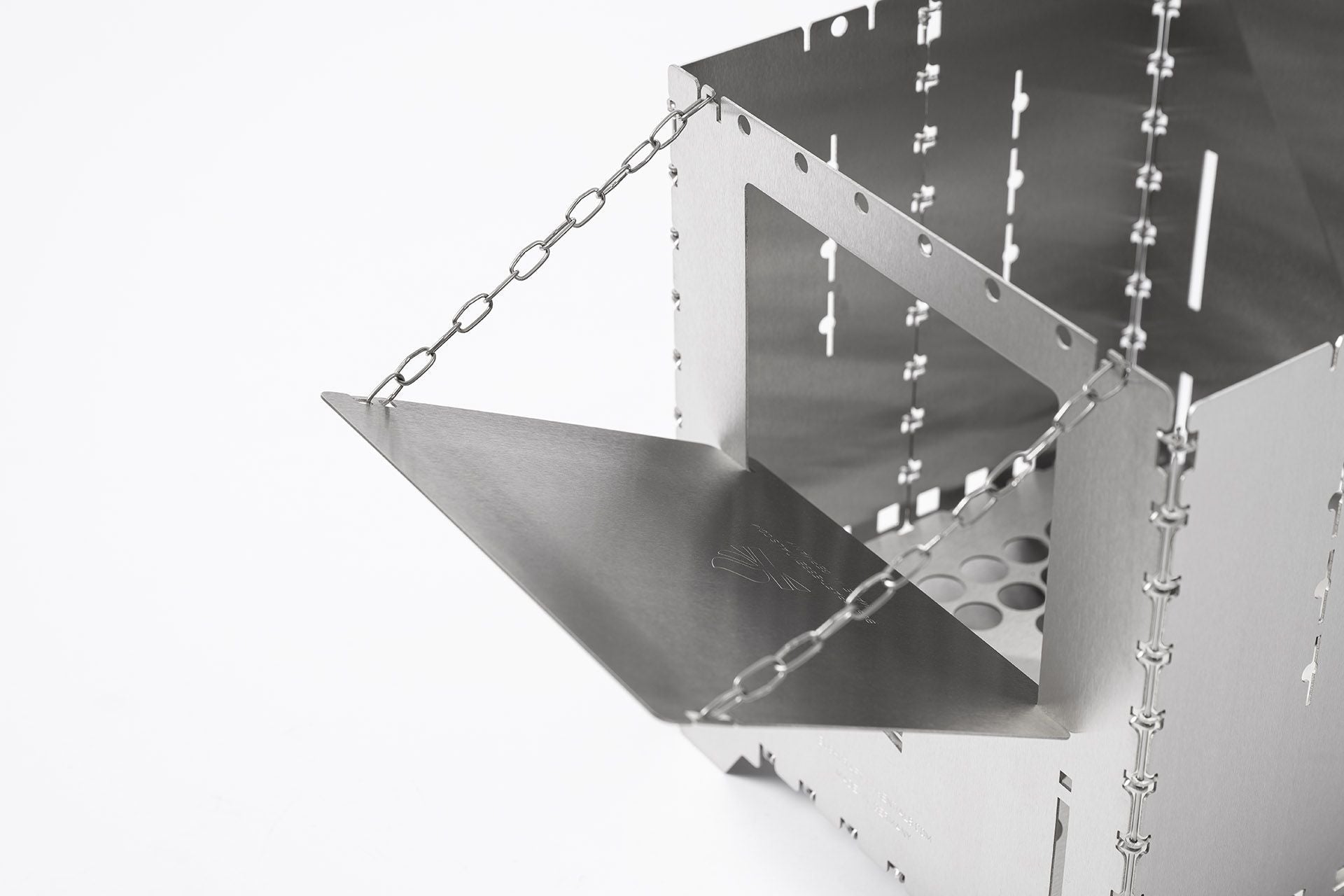 - You can also hook the Wood Slide vertically into the stove from the inside (see photo) to completely close the fuel window. This is useful for making a campfire, as it allows the heat to radiate all the way up. Alternatively, you could cook with charcoal or use it as an additional windshield for your Trangia.