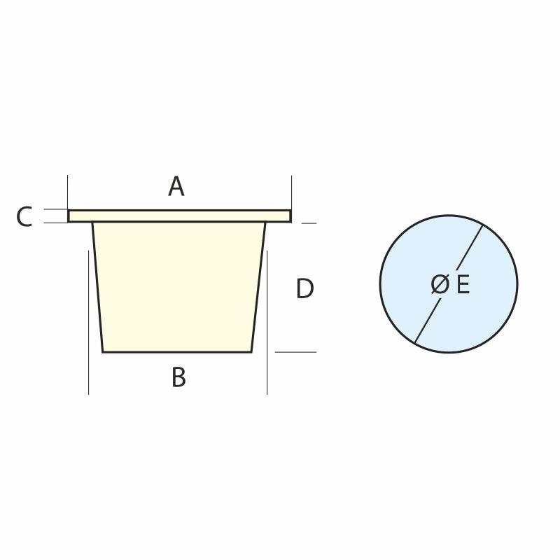 Dimensions: A 95mm (3.74in); ØB 68mm (2.68in); C 5mm (0.20in); D 72mm (2.83in); ØE 68mm (2.68in).
