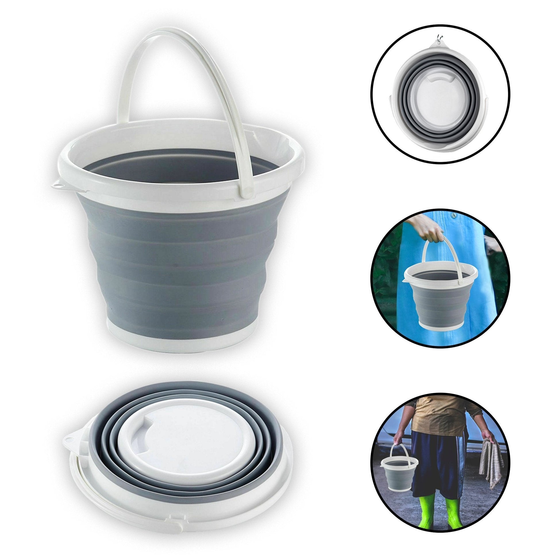 - It's collapsible base makes it an super space-saving multipurpose bucket, portable and easy to take for any kind of outdoor events