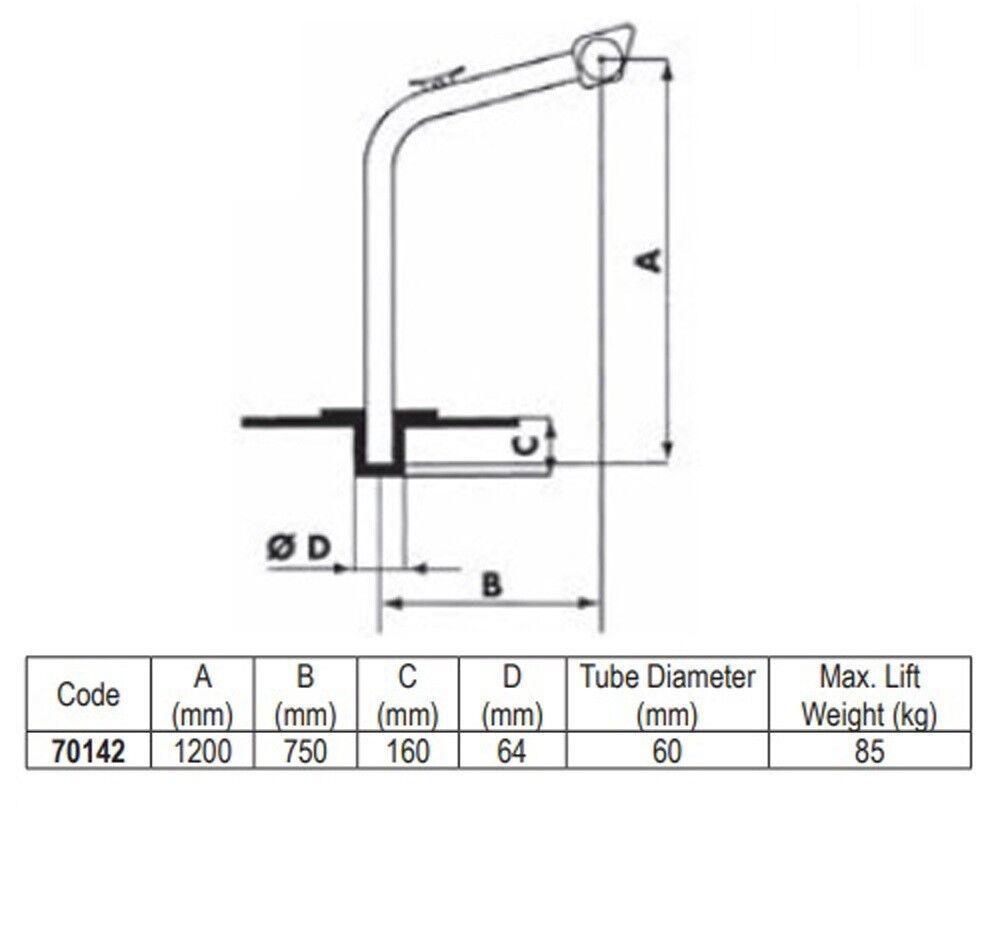 - Arm height 750 mm (29.5 in) — accommodates tenders and outboards