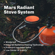 The Mars Radiant Stove System is the most efficient stove ever, offering maximized performance in Alpine conditions. Its radiant burner design enables outstanding performance, superior fuel efficiency, and superior weatherproofing