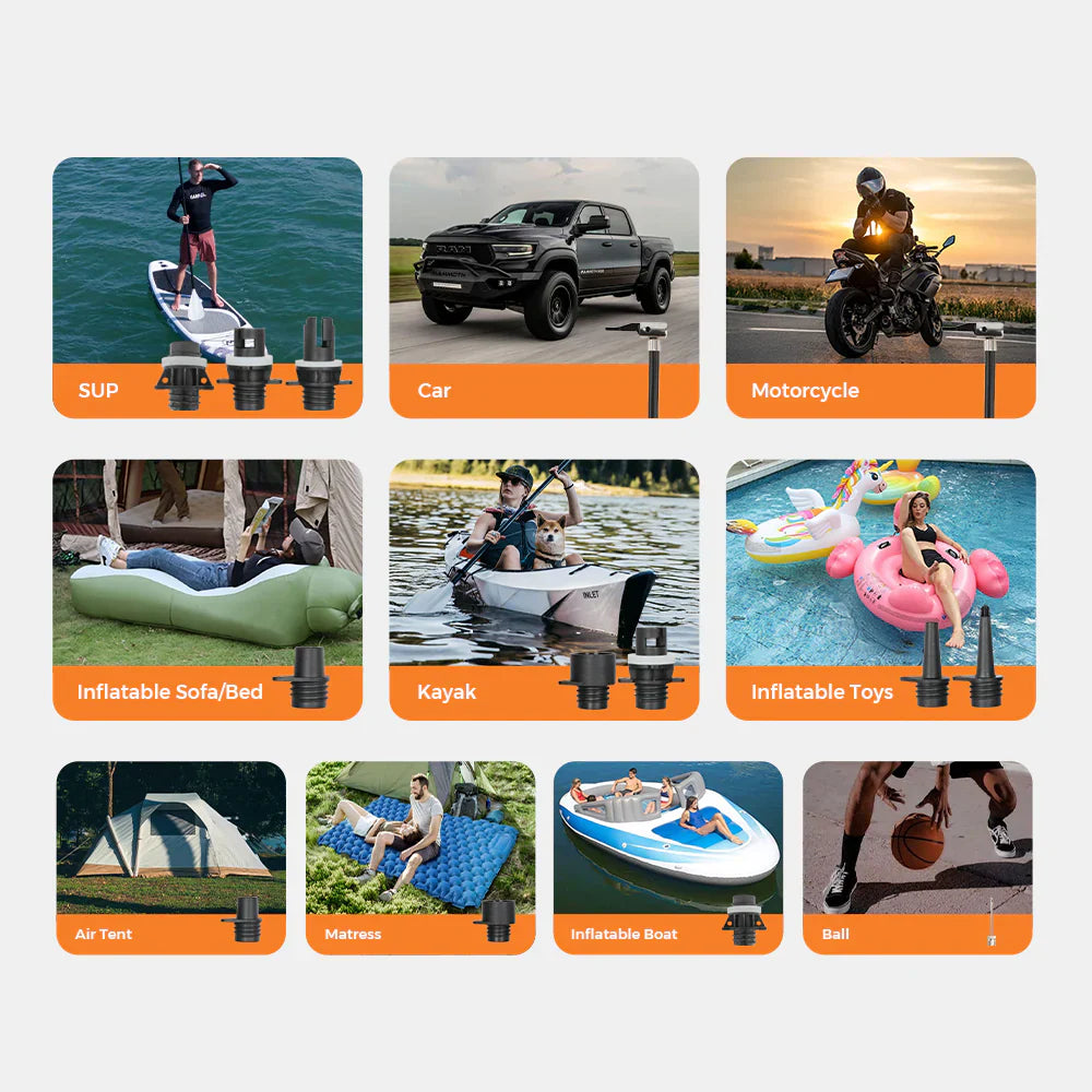 Our pump only takes 9.5 minutes to reach 15 PSI, which is 62% faster than manual inflation, and it can inflate 6 SUPs in a row.