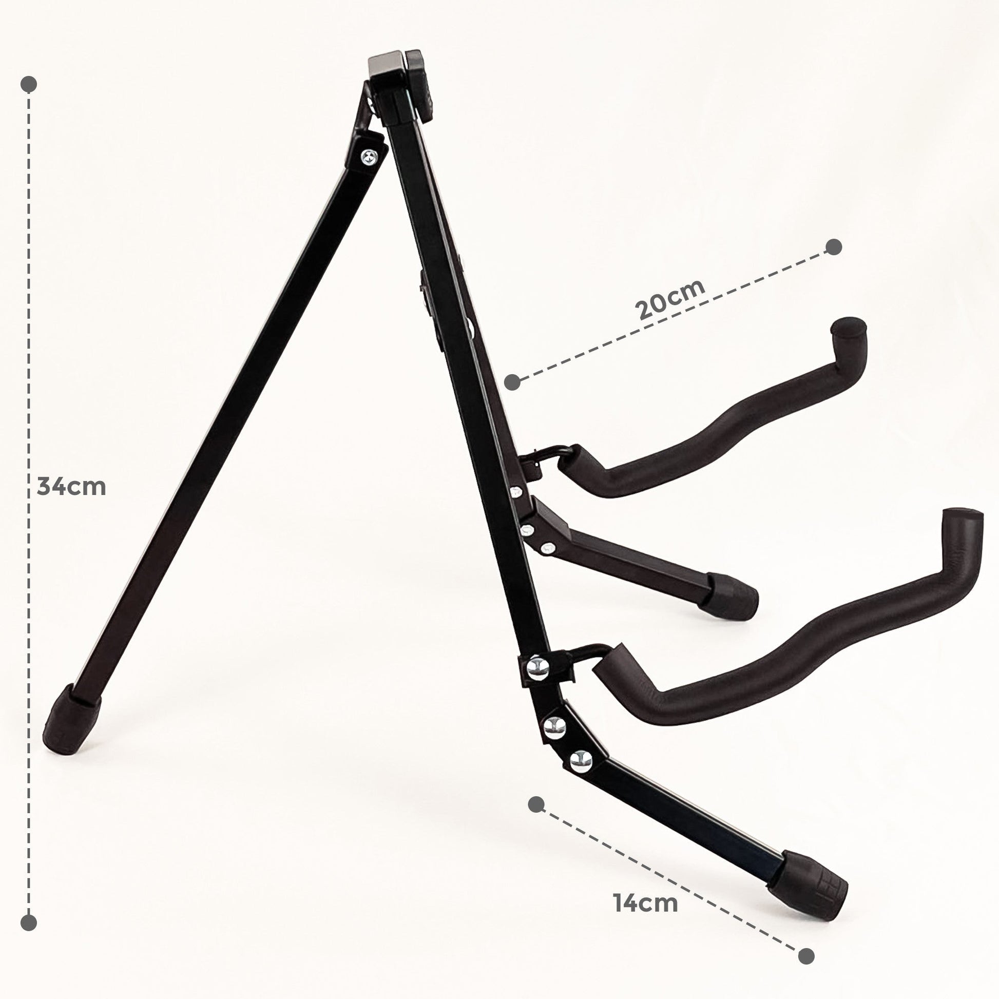 Folding metal universal free-standing shape frame guitar stands are lightweight, durable and perfect for all types of electric acoustic music guitars. They can be folded flat making them compact, space-saving and easy to transport. It has features with soft foam rubber padding on the guitar stand pipes to keep the guitar scratchless.