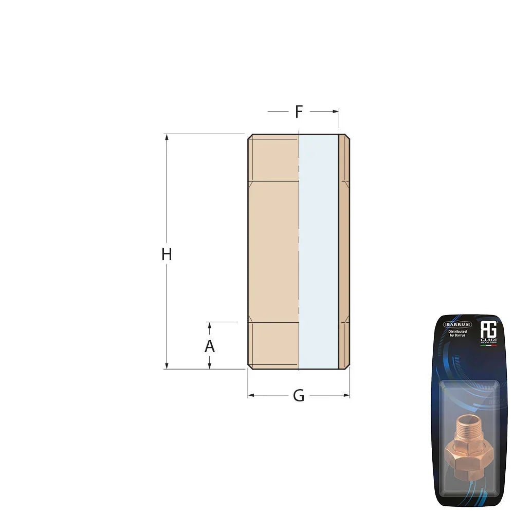 Guidi Brass Barrel Nipple Male 1/2 in x 100 mm - Retail Pack