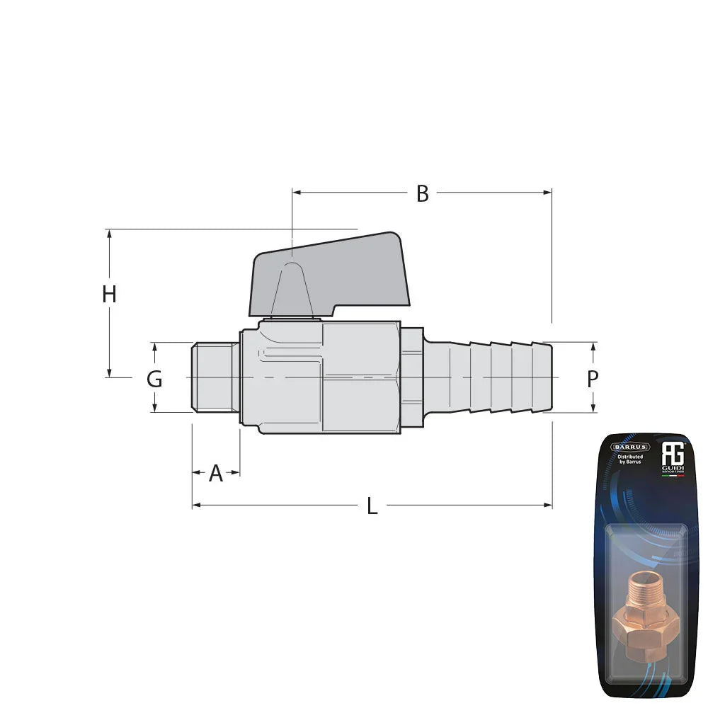 Guidi nickel-plated brass throttle-operated male-female full flow '2000' series ball valve, packaged