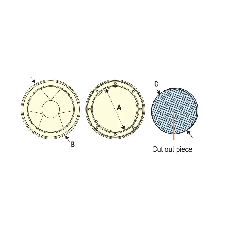 - Cut-out diameter (C): 115 mm (4.5 in)
