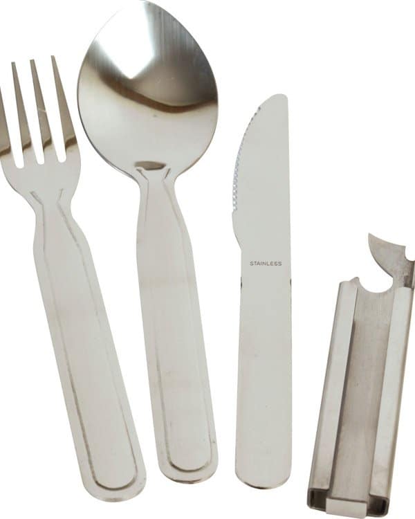 We are sure any Scouts and Cadets would recognise these! THE KFS! Combining a set of Knife, Fork and spoon fitting into a holder with a built-in can opener.