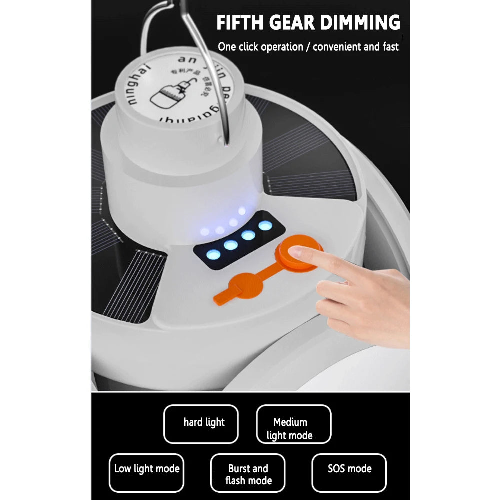 LED Camping Light IPX4 Waterproof 1200mAh Solar USB DC Rechargeable Portable LED Lantern 5 Modes 500LM Outdoor Lights