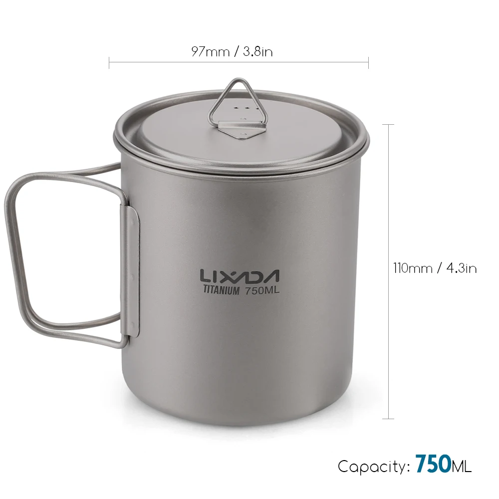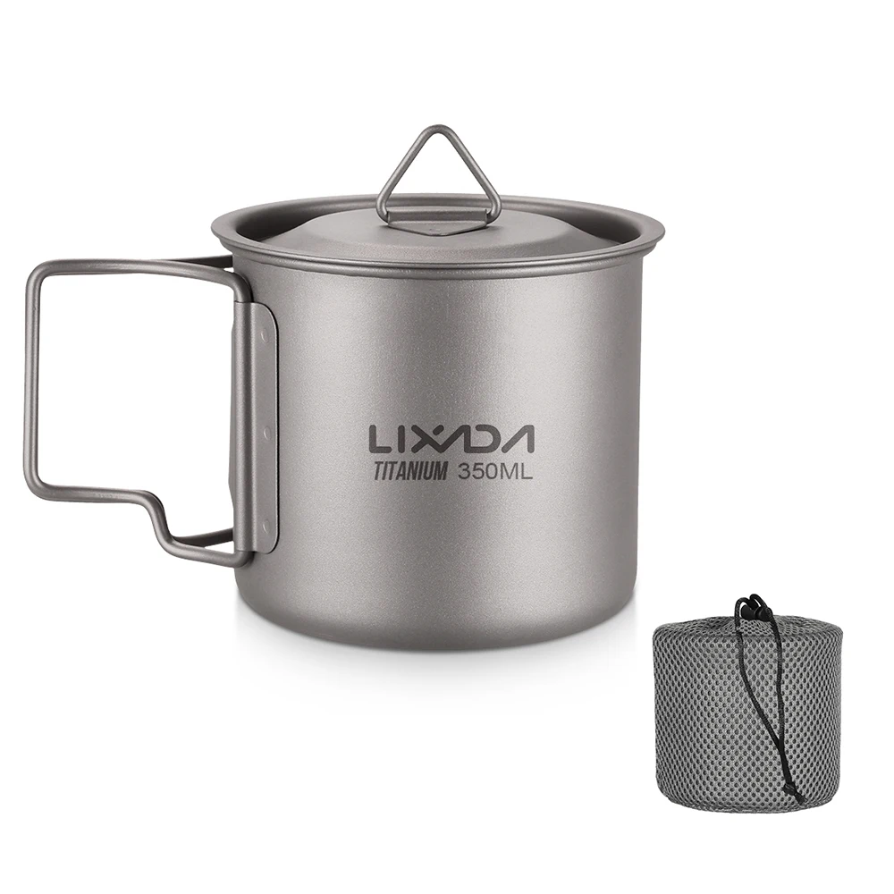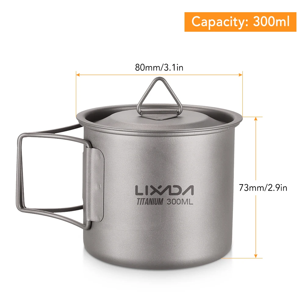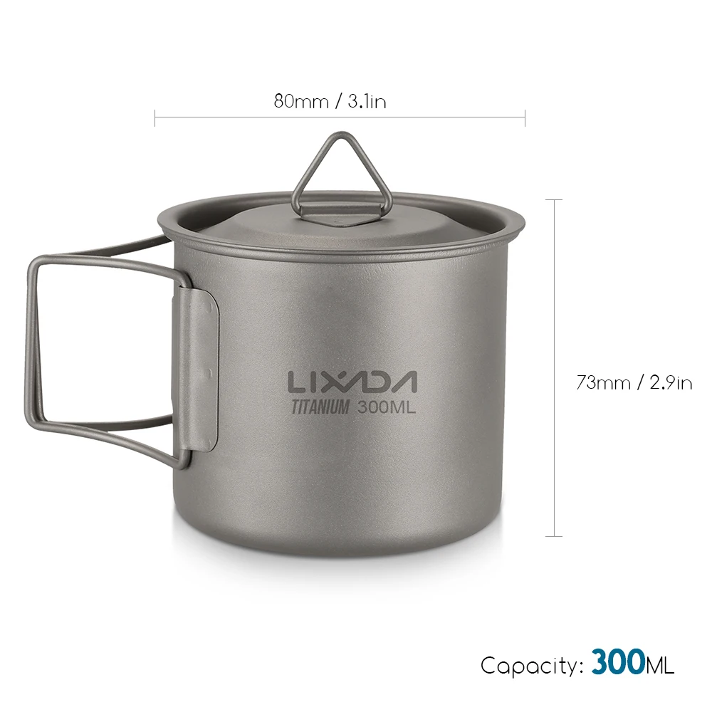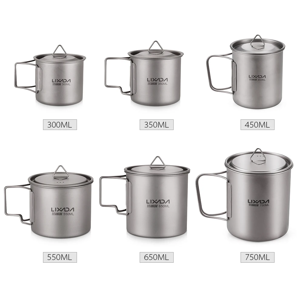 Lixada Ultralight Titanium Cup Mug 300/350/550/650ml/750ml Outdoor Water Cup Picnic Water Mug Tableware with Foldable Handle