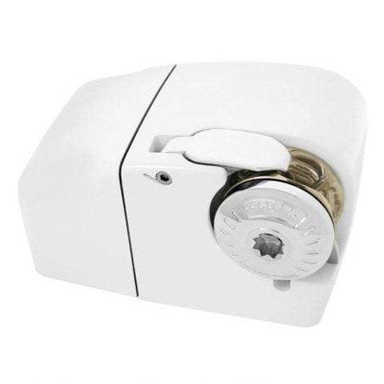Lofrans Lion 1000 horizontal low-profile windlass for 8 mm chain & 10–12 mm rope. Spring-loaded arm, manual chain release; automatic free-fall available as an option.