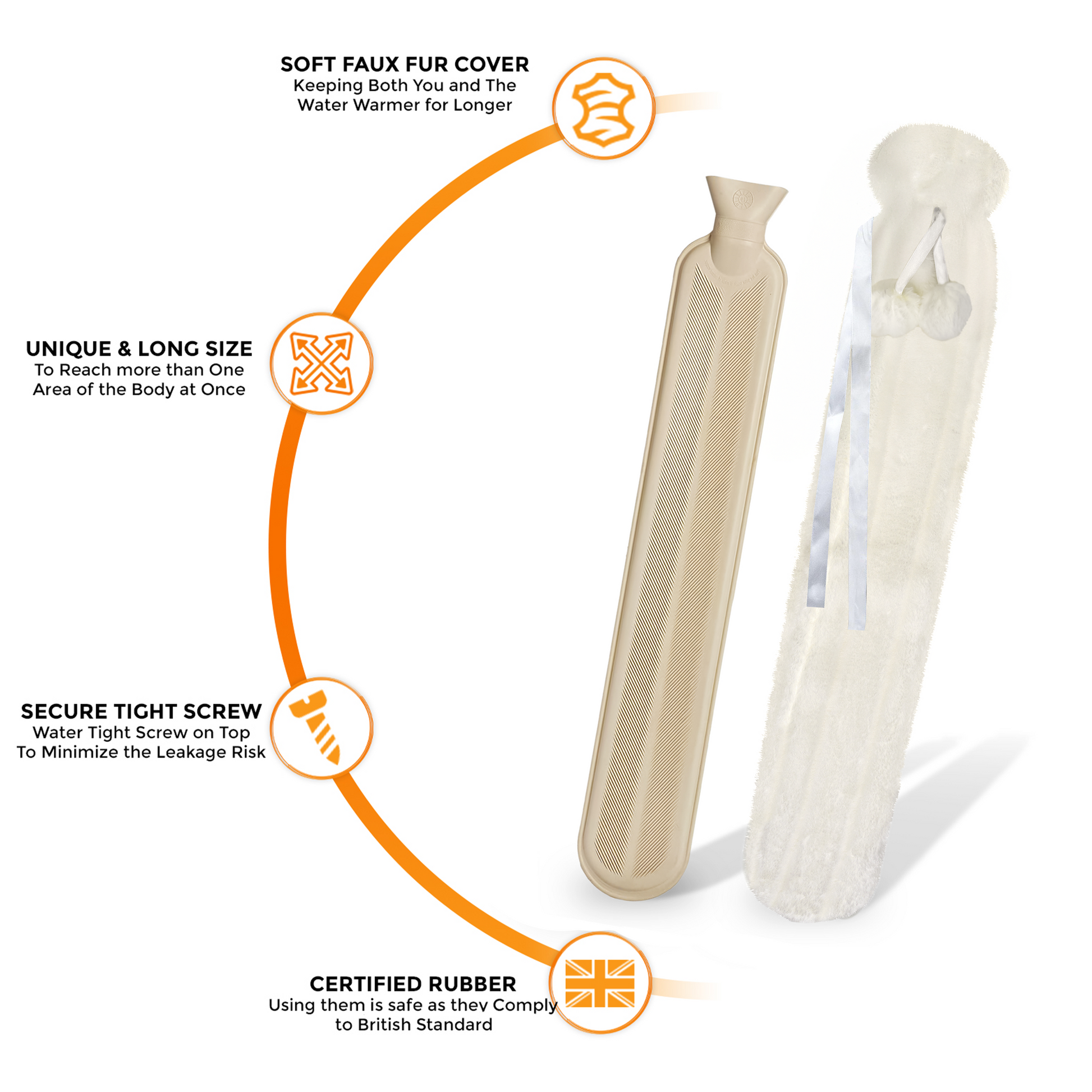 Long Hot Water Bottle With Fluffy Cover 2 Litre