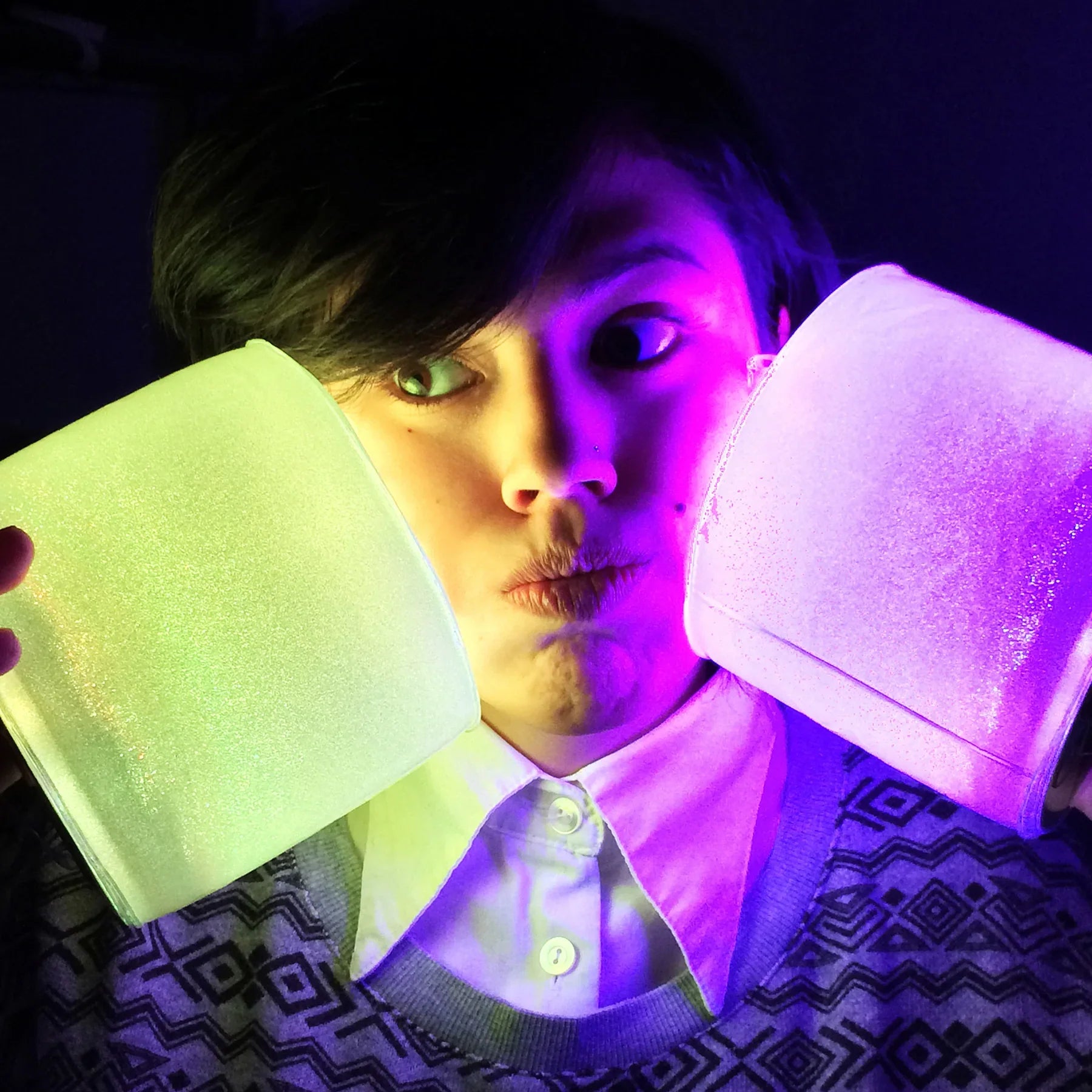 • 8 colours: red, green, blue, purple, yellow, cyan, orange, and white • Sparkle finish • RGB LEDs • Lasts up to 9 hours on a single charge (see details under "tech specs" below) • Recharges in 7 hours