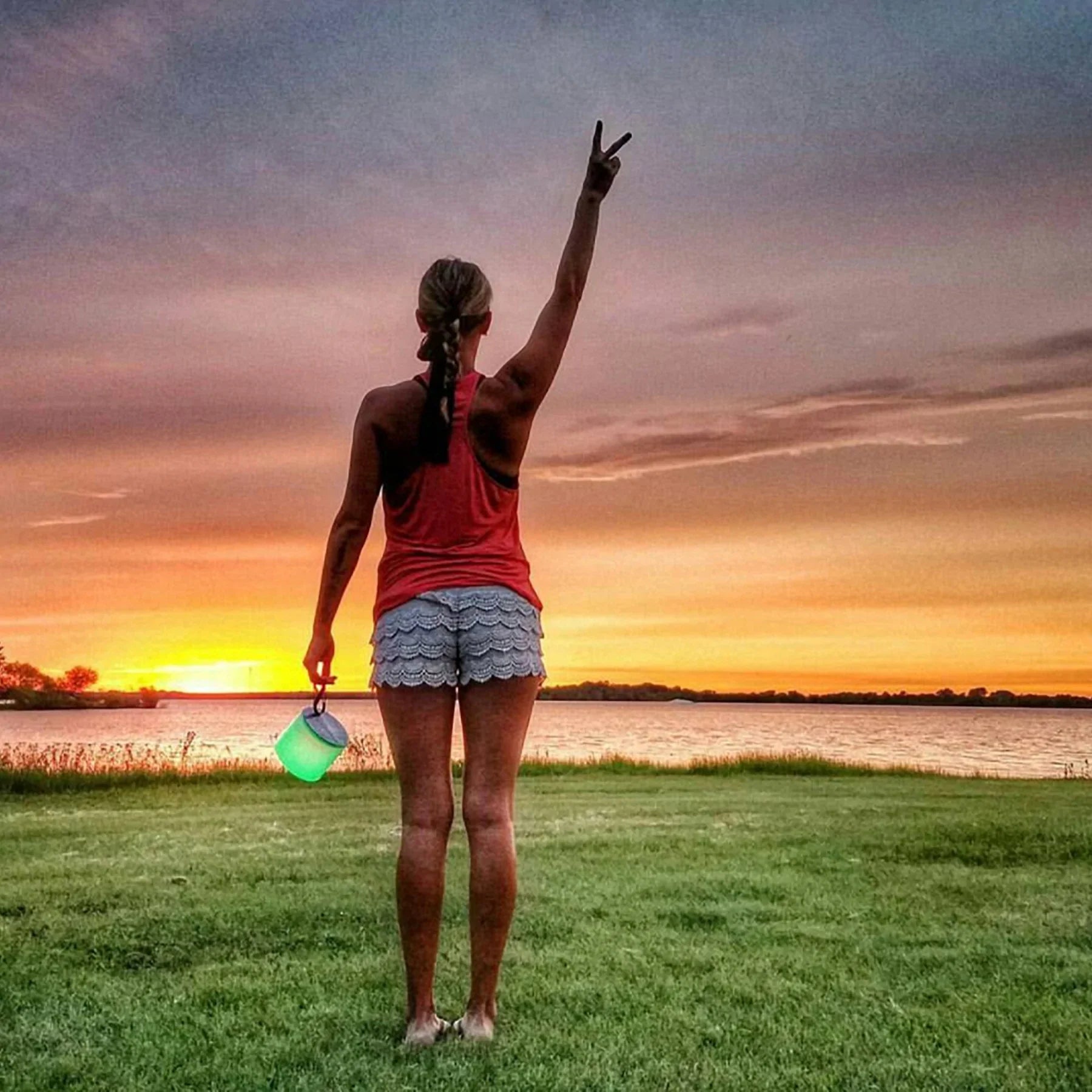 Get to know the product a little better. Product Features • Sparkle finish • 10 multi-colour LEDs • Fixed base strap • Durable: withstands up to 150 lbs of pressure • Lightweight: 4.4 oz (125 g) • Waterproof: IP67 • Operating temp: 32ºF – 113ºF (0ºC – 45ºC) Product functions • 8 colours: red, green, blue, purple, yellow, cyan, orange, and white • Color cycle mode + 8 unique colors • 2-second quick shut off • Battery level indicator Battery life • Red: 7 hours • Green: 9 hours • Blue: 7 hours • Purple, yellow, cyan, orange, and white: 5 hours Charge • Recharges in 7 hours • Recharge via direct sunlight • Rechargeable 1000 mAh Li-ion battery • Overcurrent protection Dimensions • Diameter: 5 inches (12.7 cm) • Height: 4.25 inches (10.8 cm) • Collapsed: 1 inch (2.5 cm)