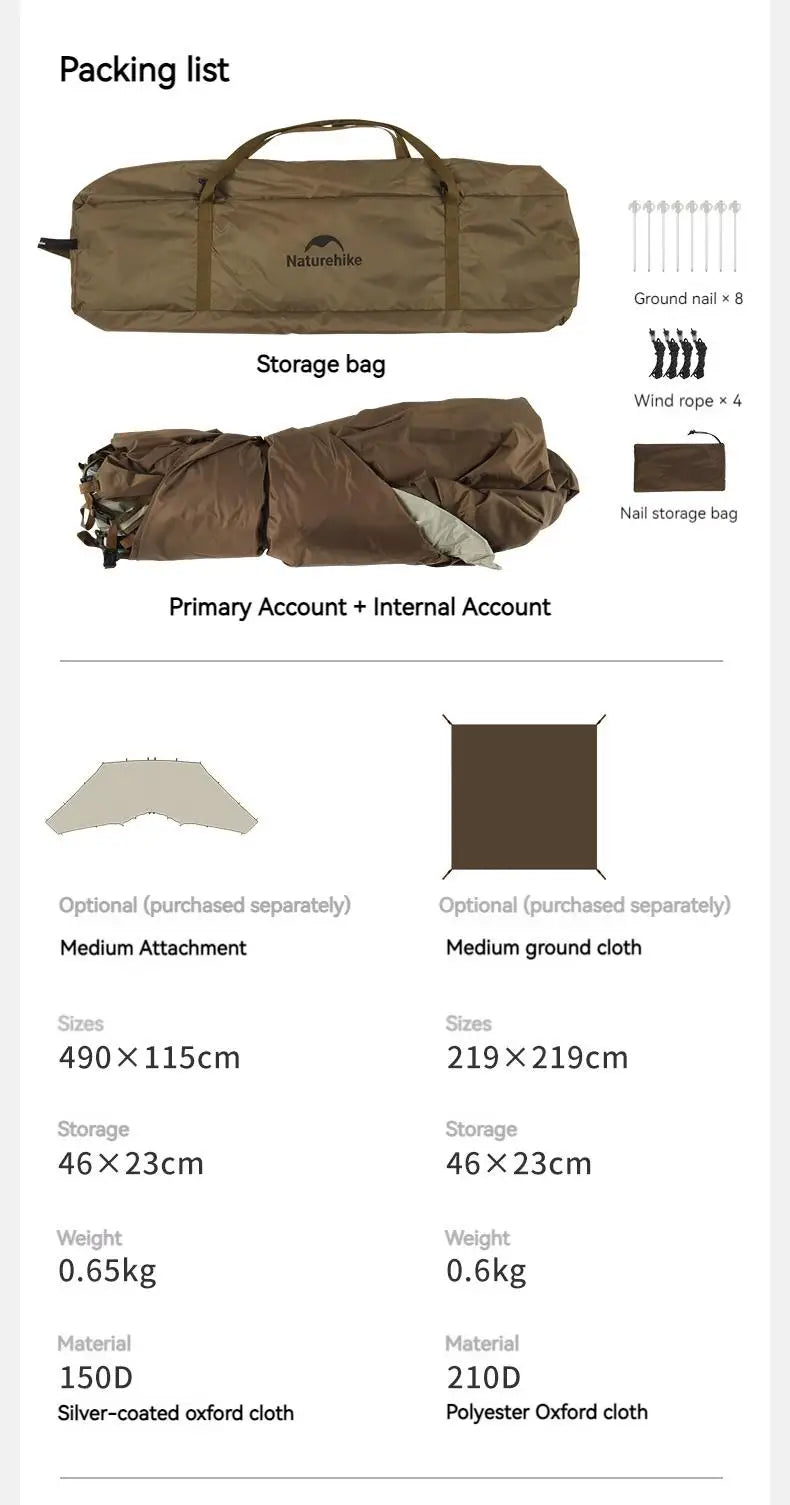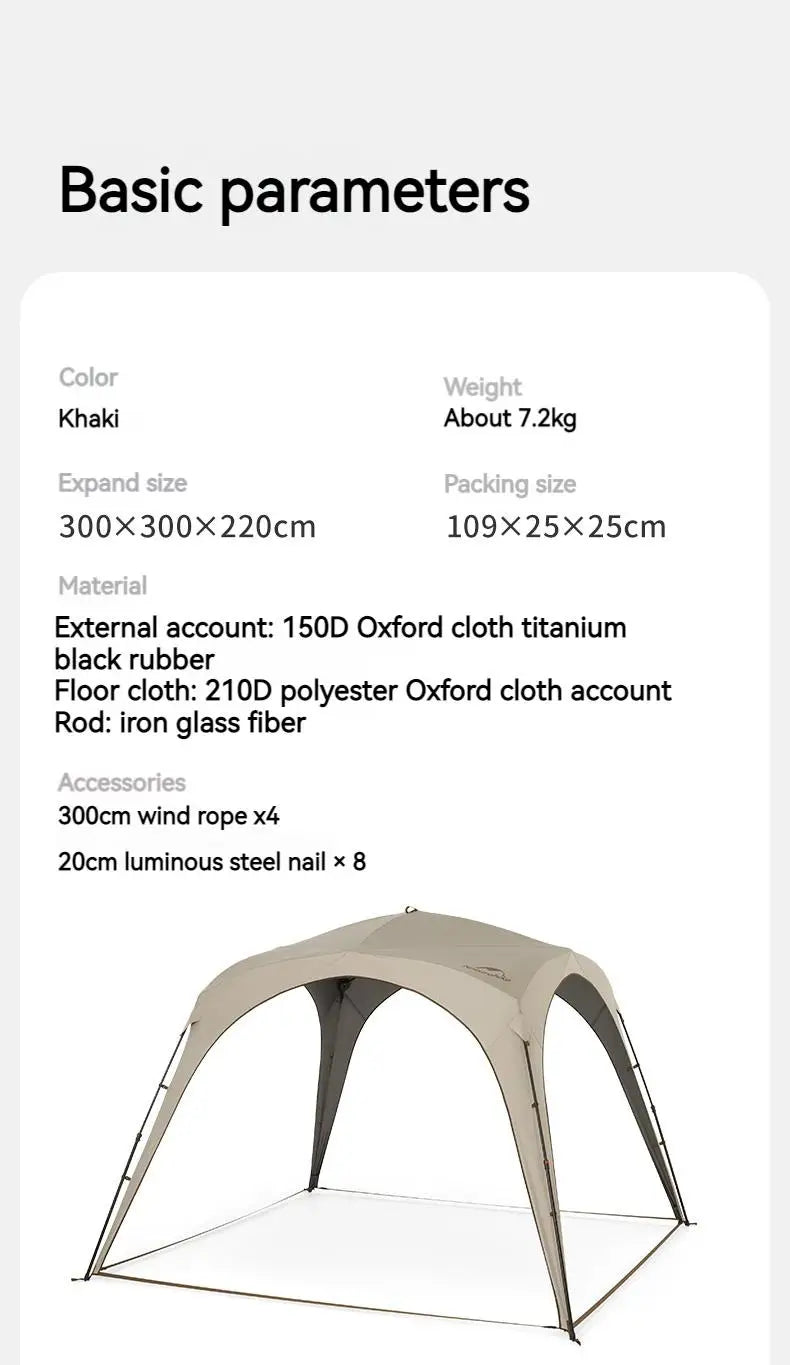 Accessories: Main tent X120cm / Luminous steel pegs X8 / 300cm wind rope X4