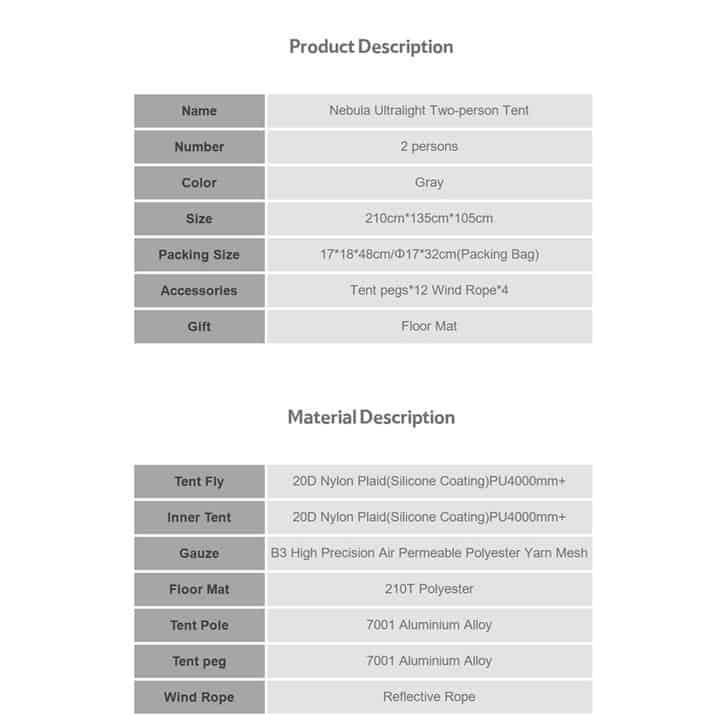 Naturehike Nebula 2, 2 Man tent 4 Season