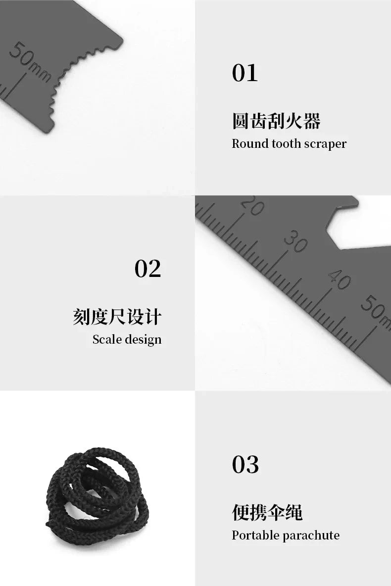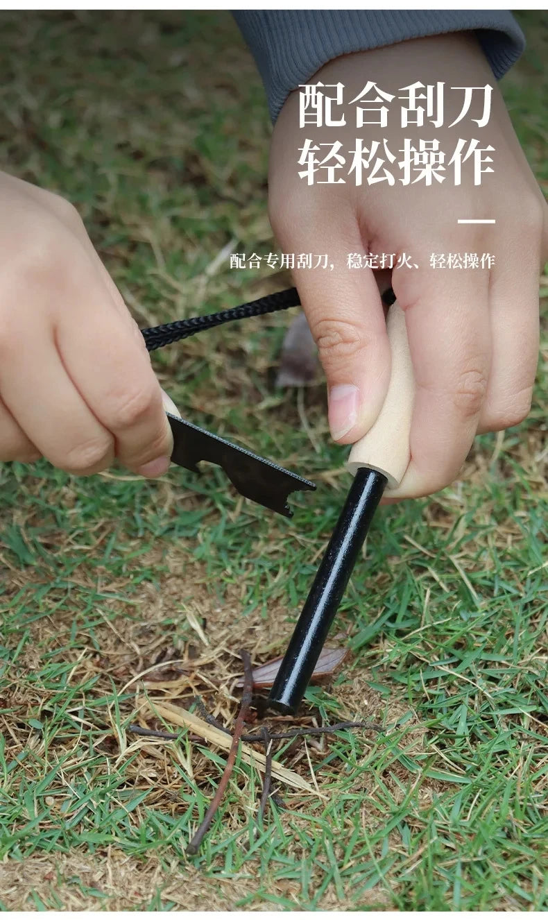 New Outdoor survival flint umbrella rope set, wooden handle magnesium rod multifunctional scraper, outdoor camping fire tool