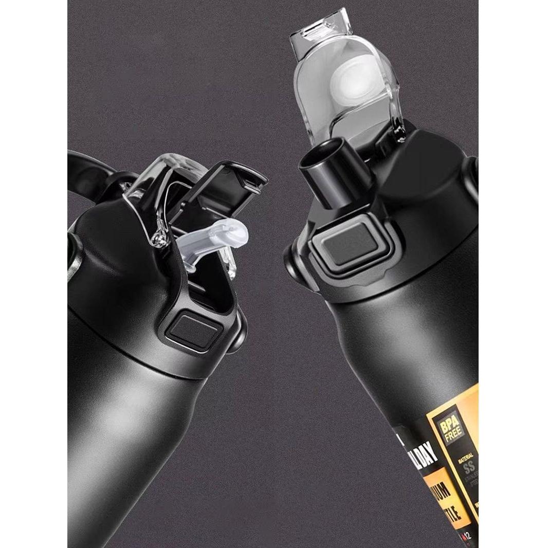 Just push the button with one hand, the straw will pop out automatically, our insulated water bottle with straw gives you an easier way to drink water. The straw is removable, you can enjoy sipping with straw or fast water flow without straw. This upgraded lid comes with a safety lock and dust-proof cap that ensures 100% leakproof and healthy daily water drinking.