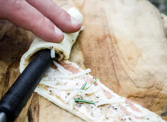 The wooden handle ensures that you can easily hold the Campfire Bread Skewer during preparation and continuously turn it over the fire until the dough is baked golden brown. No matter whether you have decided on a sweet, a savory or a twist bread without yeast recipe, with the Petromax Campfire Bread Skewer with Cast-iron Tip there are no limits to your creativity. Diverse variations make the preparation with the robust and durable Campfire Bread Skewer an individual campfire adventure time and again.