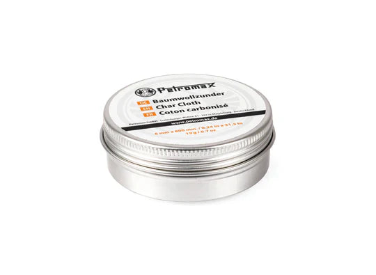 Any crackling campfire originates from a glow – With Char Cloth in the handy tin you have the spark for the Petromax Fire Plunger within immediate reach. The contents of one tin correspond to approximately 450 ignition processes and suffice to replenish the storage container of the Fire Plunger about 30 times. Also, the combustion material is completely natural and consists solely of pyrolised cotton rope. This glows particularly intensive and long-running, so that you can fuel your tinder nest and get your cooking place up and running.