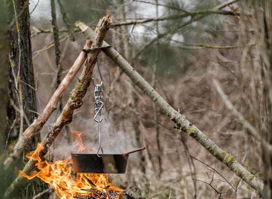 - Hang a Dutch Oven or Teakettle directly over the fire