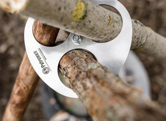 With the Petromax Tripod Lashing it is possible to set up a campfire quickly and easily for outdoor cooking adventures. The campfire cook simply has to find three branches and trim them to size before leading them through the openings in the Tripod Lashing. After making a fireplace and adding a hook a Dutch Oven or Teakettle can be hung from the tripod. The length of the chain can be adjusted to move the pot closer to the fire. The Tripod Lashing is very compact to carry and is also suitable for building a tipi, for example.