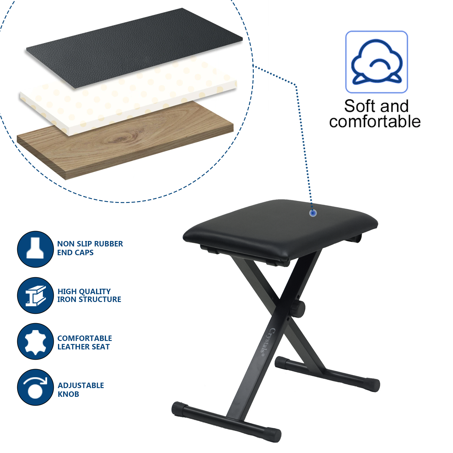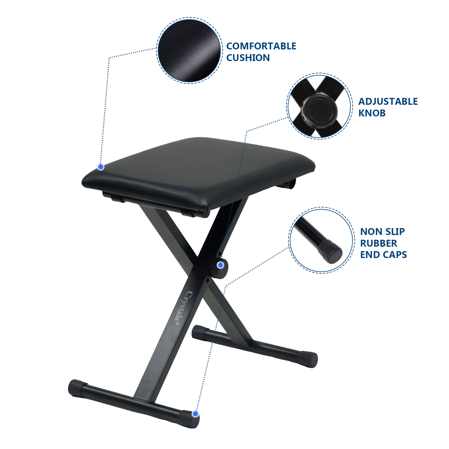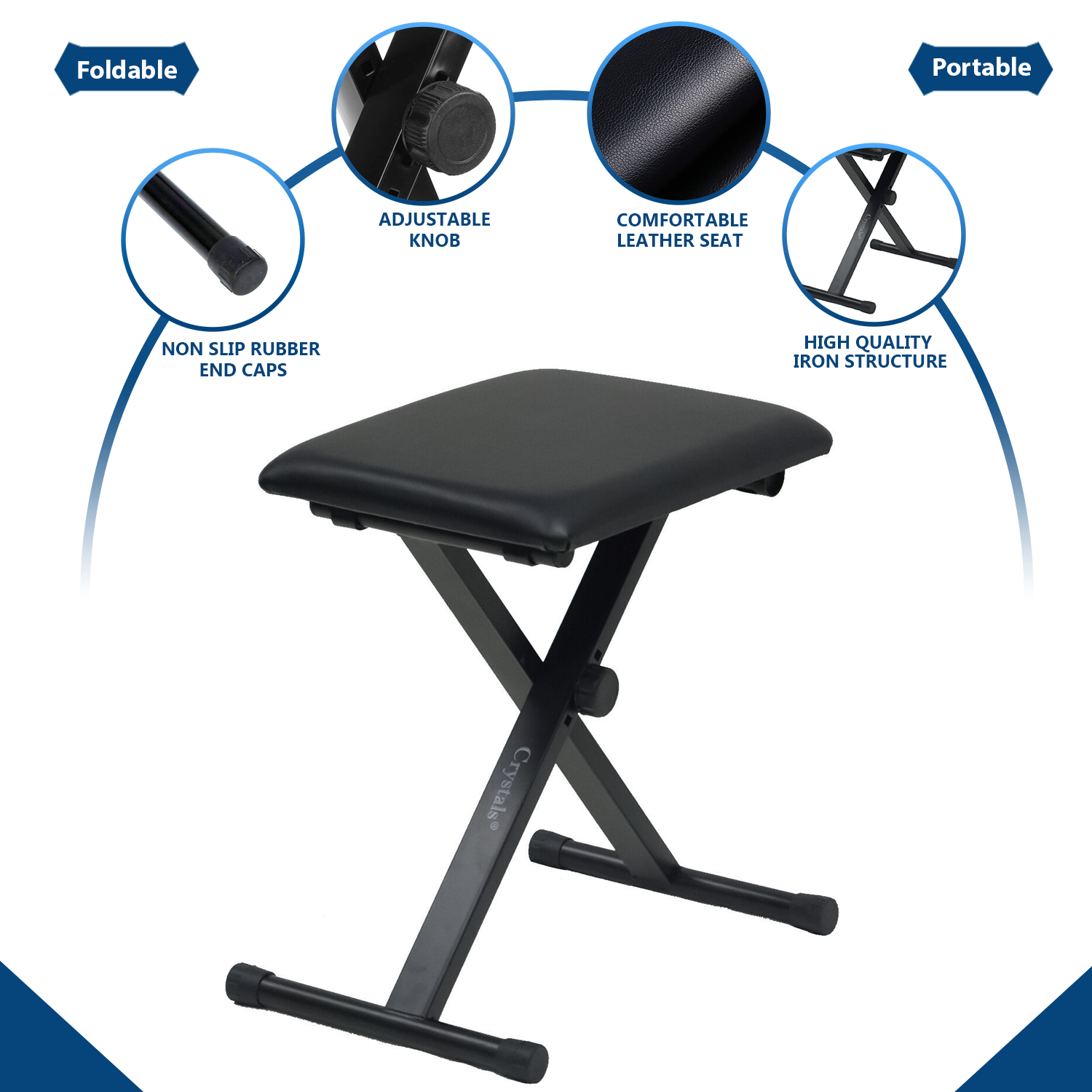 The keyboard piano, drum players and musicians chair stool seat is made from durable metal with padded leather seat for extra comfort. The seat is height adjustable and can fold away for easy storage. Ideal seat for piano players and drummers for great performances.