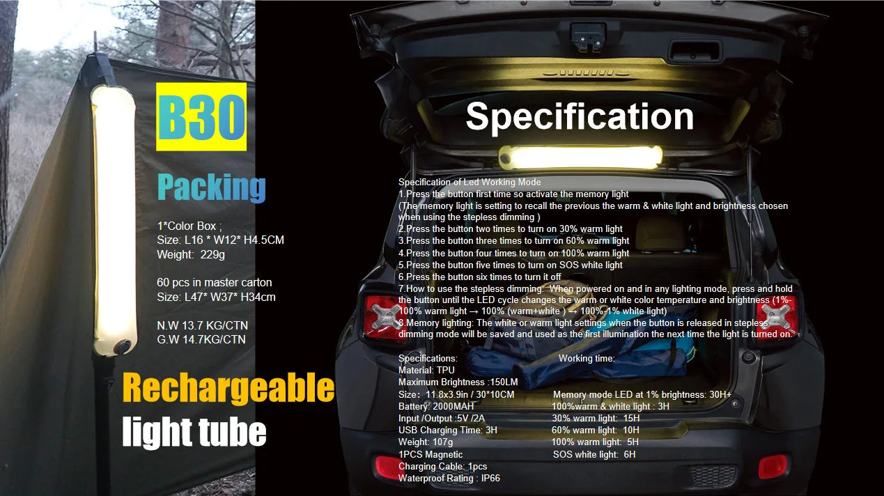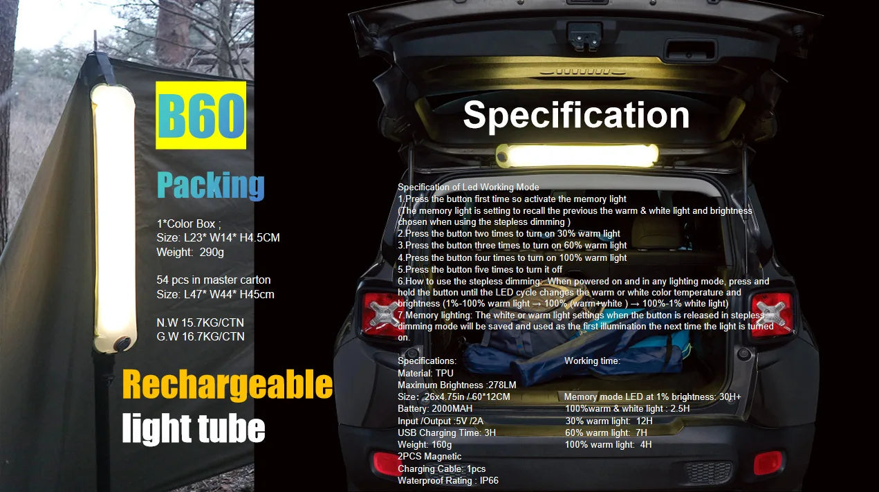 Portable Air Tube Light Foldable LED Soft Light Inflatable USB Solar Charging Waterproof Outdoor Photography Camping Lighting