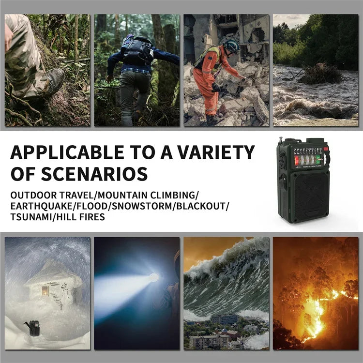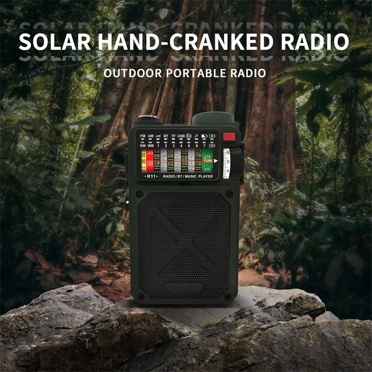R11 Solar Hand Generator Radio Card Speaker Outdoor Emergency Disaster Prevention Survival Equipment with SOS Alarm Flashlight