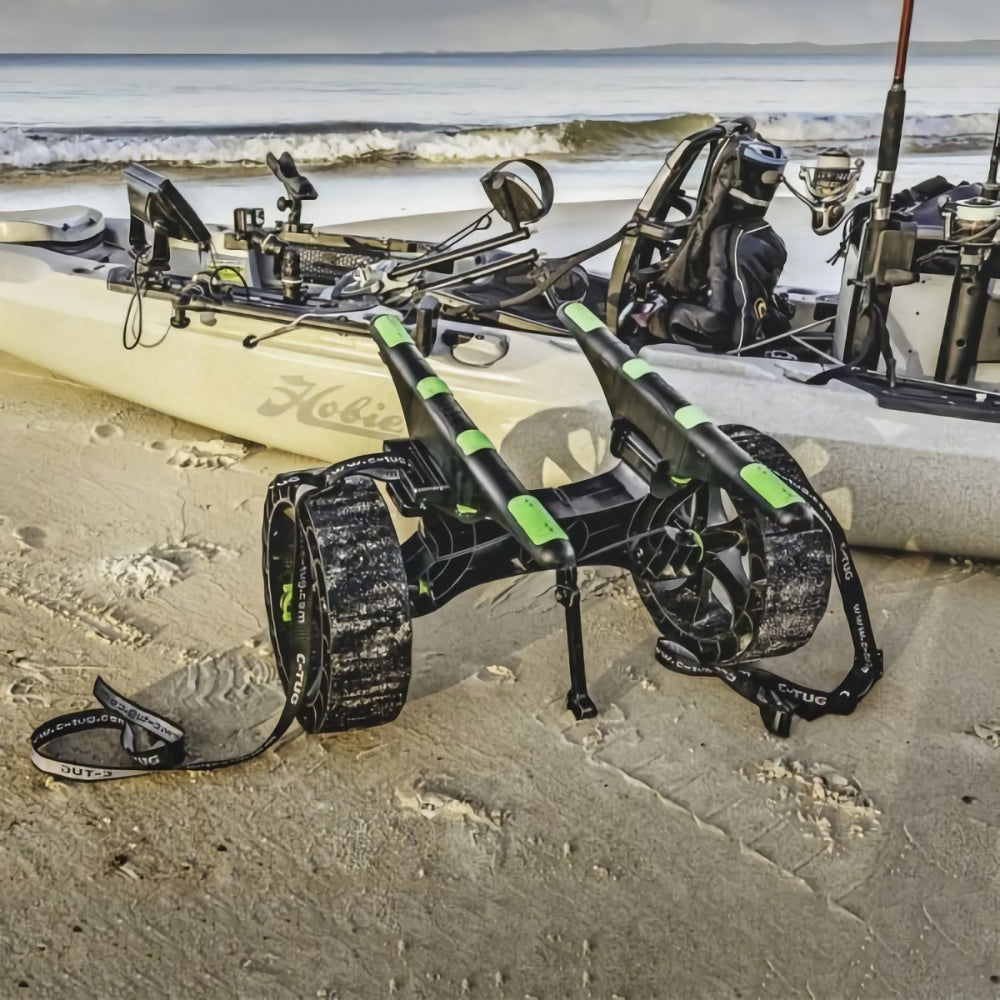 The C-Tug R assembles and dismantles in seconds and stows easily in a canoe or kayak hatch. The kickstand holds the cart in position while loading or unloading the watercraft onto it. The design and functionality of the C-Tug R removes the need for an extra pair of hands or multiple trips carrying gear simply load it all in one go and just pull it!