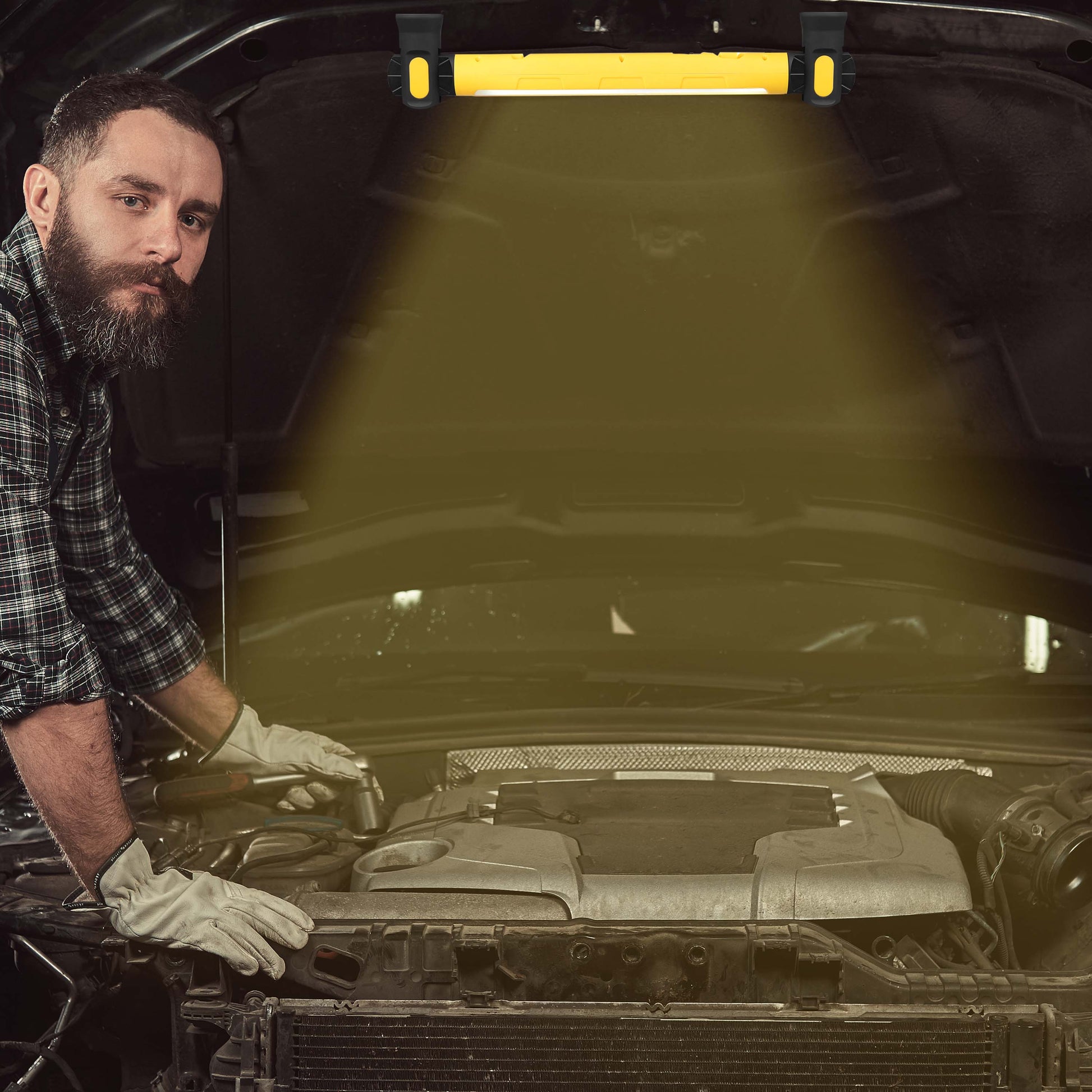 The built-in 5000mAh battery provides long-lasting power and doubles as a power bank in emergency situations. Its compact, rugged design makes it a reliable tool for mechanics, DIYers, outdoor enthusiasts, and anyone needing portable, dependable lighting. Suitable for both indoor and outdoor use — from garage work and home repairs to hiking, camping, and emergency prep.