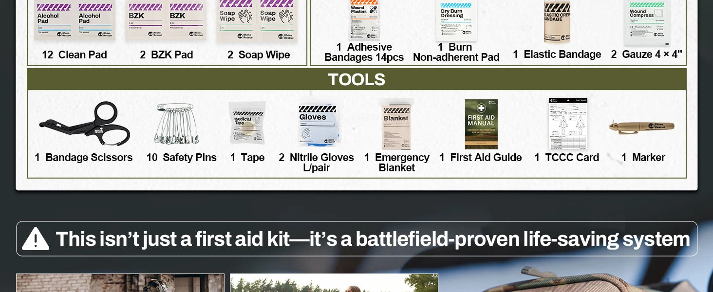 RHINO RESCUE-SE IFAK Trauma First Aid Kit,Tactical Medical Pouch for Car Home Travel Hiking and Camping,Emergency Survival Gear