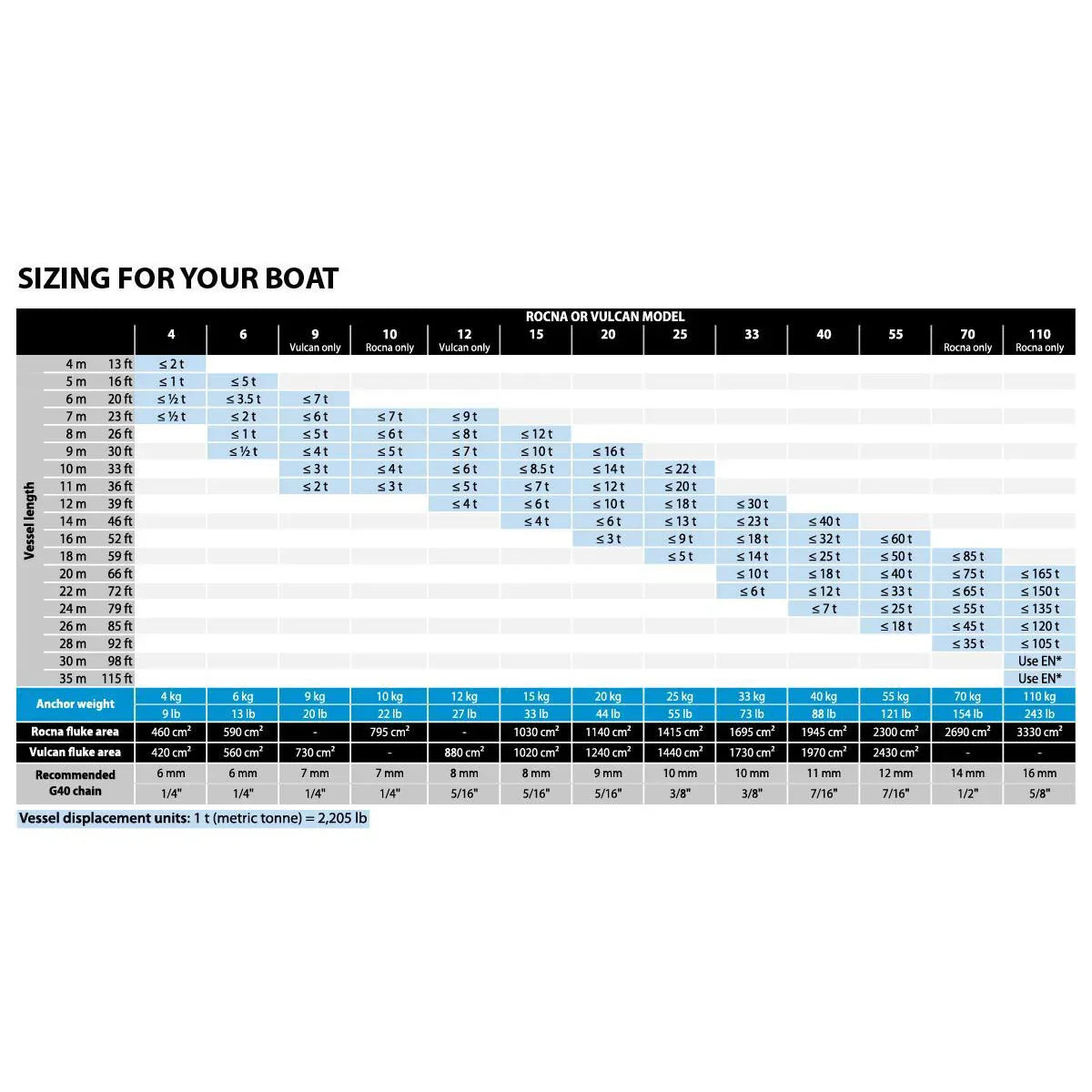 The Rocna Galvanised 10 kg (22 lb) anchor is a true multi-purpose anchor that sets and holds in most seabeds - from soft mud to hard sand, clay, grass and kelp - providing reliable penetration and holding power.