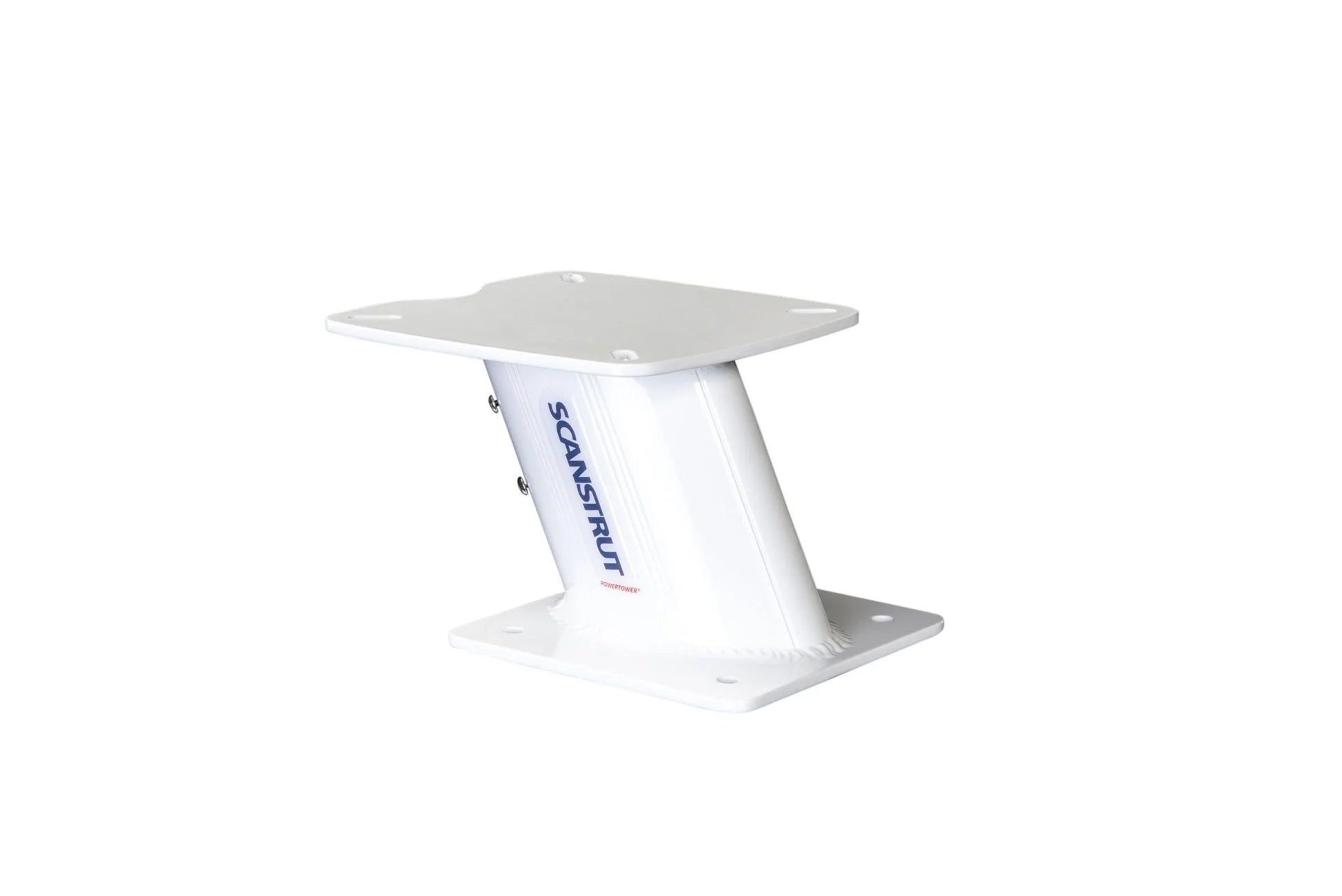 Scanstrut APT-150-02 Aluminium PowerTower raises and secures radomes 150 mm (6 in) above T-tops, flybridges and radar arches to optimise horizon clearance and radar performance.