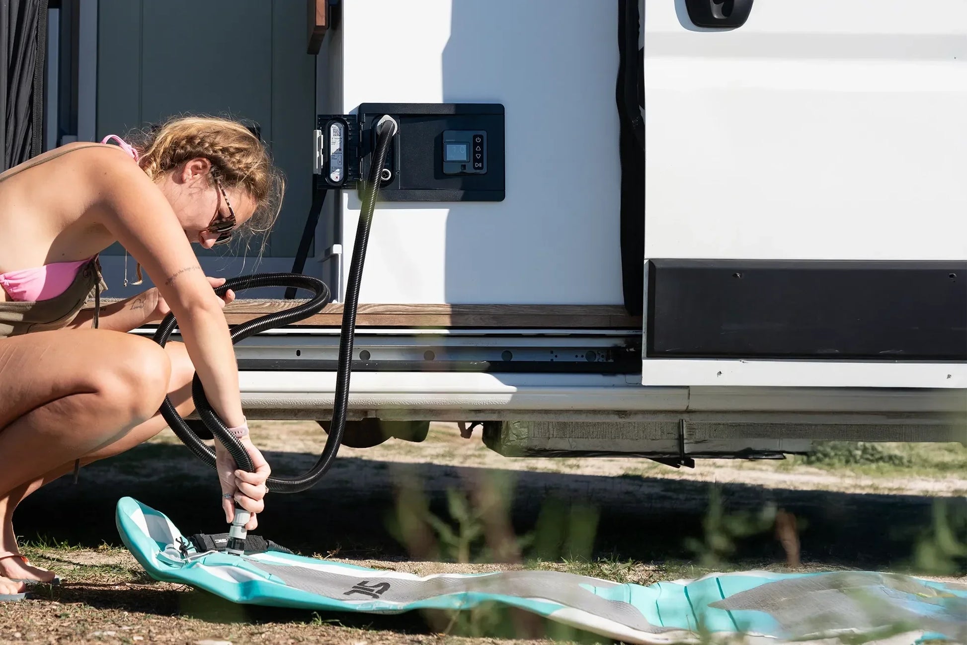ATMOS is an in-built air station engineered for reliable, convenient onboard inflation for paddleboards, towables and more. Simply set the target pressure and let ATMOS do all the hard work. Utilizing Scanstrut’s marine-grade engineering, ATMOS provides consistent, low-noise performance and efficient power draw for all your inflatables.