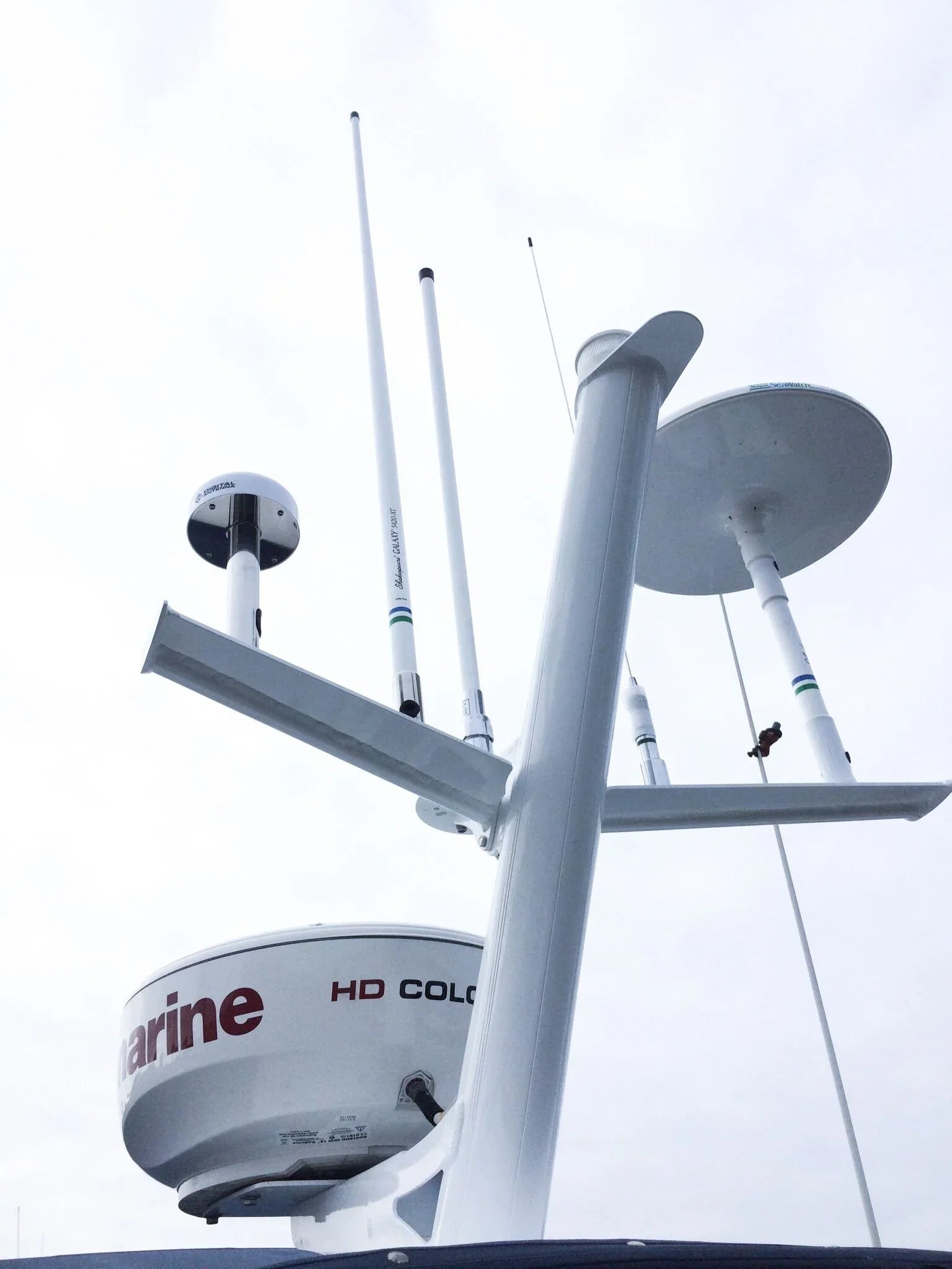 - Single combination mount for radar, lights, GPS/VHF antennas, cameras or searchlights